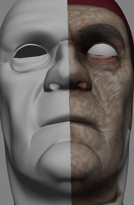 Pero como soy muy cabezón pues en este modelo no quiero usar Mudbox ni ZBrush, hasta que lo tenga realmente finalizado, para hacerle las heridas y mil y una arrugas que tiene. (aunque no me gusta demasiado las mil y una arrugas).