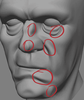 También hay otra cosa que me gustaría saber es como colocar bien el músculo del orbicular del ojo inferior, yo lo tengo simétrico, pero en la realidad aparenta estar inclinado y uno encima del otro no continuos, creo que es así, pero.