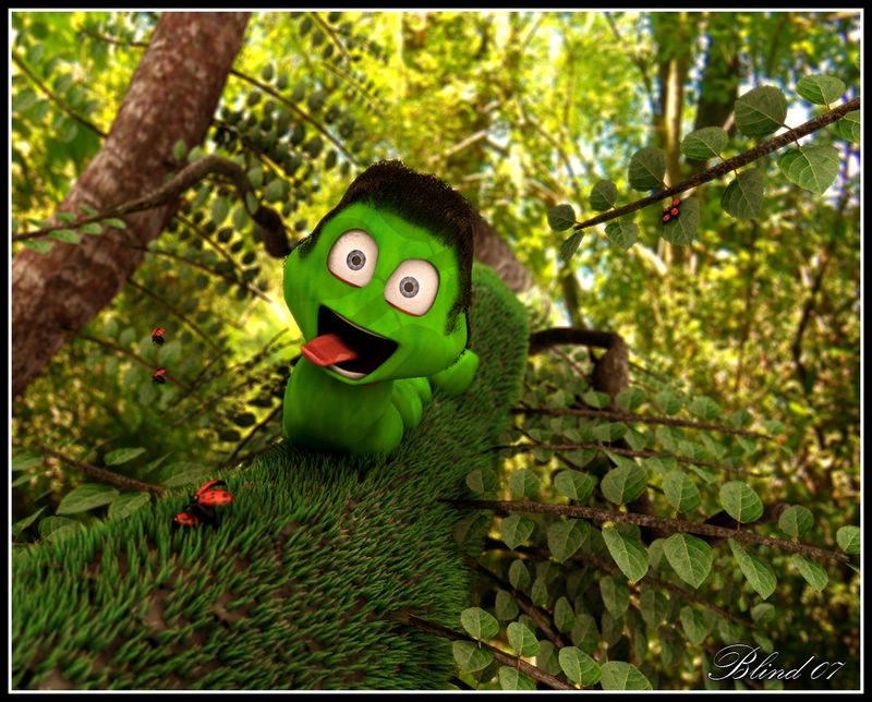 La composición no me convence, prueba a voltear la imagen horizontalmente, para que el gusano vaya hacia la derecha (por aquello de que leemos de izquierda a derecha, seguramente quede más agradable).