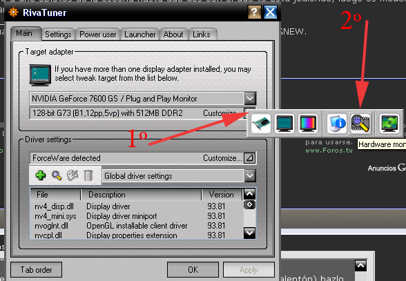Podría ser lo que dice Mesh (creo haber leído algo, aquí en 3dpoder sobre lo que dice Mesh). Pero si quieres monitorear las temps (que yo no descarto un calentón) hazlo con el Rivatuner, te paso una captura para que veas cual es la utilidad, otra forma sería con el ntune, para ello bájalo desde la web de Nvidia y una vez instalado inicia la utilidad llamada: Nvidia monitor, te dejo las capturas para hacerlo con Rivatuner, un saludo.