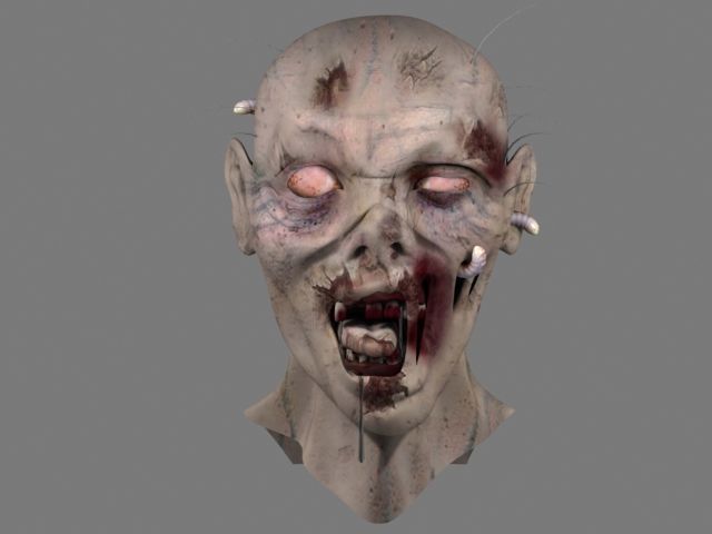 Un zombie horripilante de verdad quedaría bien haciendo tres capas, la piel los músculos y el cráneo y bueno, quitando y poniendo cachos de un lado y otro igual es una locura lo que digo.