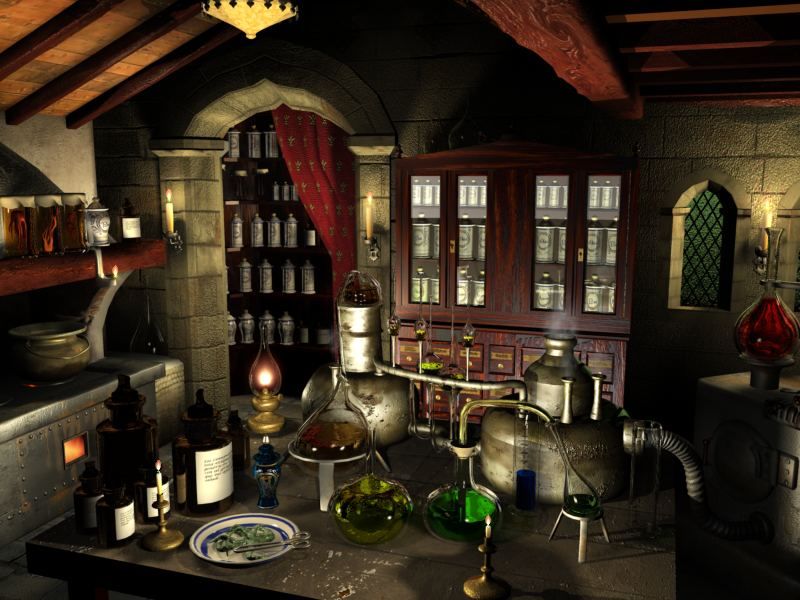 La escena está muy trabajada, y tiene cantidad de detalles, lo cual sólo hace que engrandecer tu trabajo. Sólo añadiré dos cosas: la primera, que si te fijas en la sombra que proyectan los recipientes que hay en primer término, uno se da cuenta del contorno poligonal que tienen. Tal vez deberías subirle el número de caras. O no, que carajo.