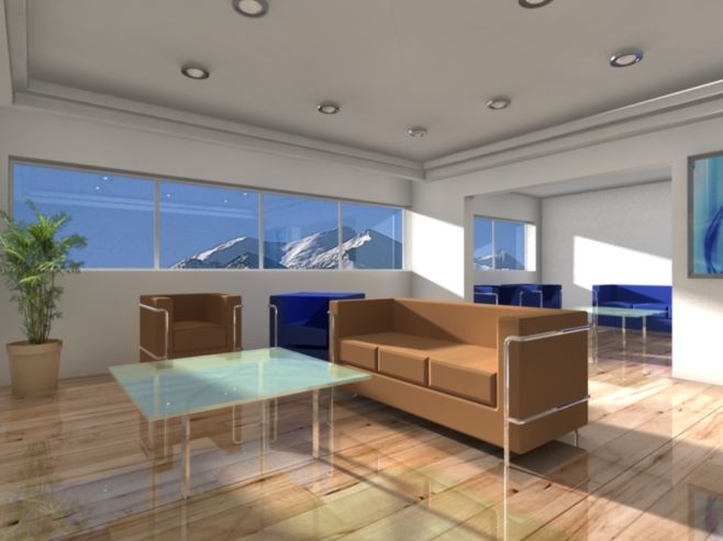 Aquí les dejo una muestra del avance del interior. Cambie algunos materiales y ajuste un poco mejor la luz, y ahora si pude guardar con la transparencia, gracias mcs y Jorge.