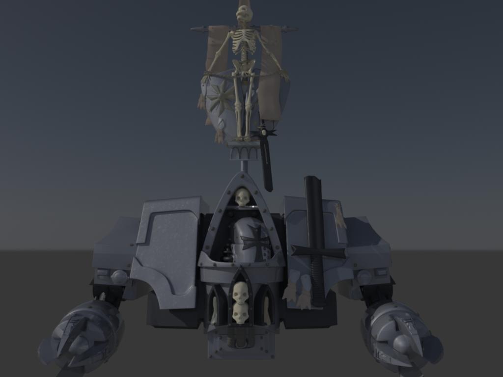 El trabajo se basa en una miniatura de Warhammer 40.000, adjunto referencias para poder comparar. Es una práctica personal para mejorar mis habilidades en modelado no orgánico. Para el modelado estoy utilizando Maya, XSI y ZBrush en fases posteriores. El render (donde lo hay, pocos todavía) es Mental Ray.