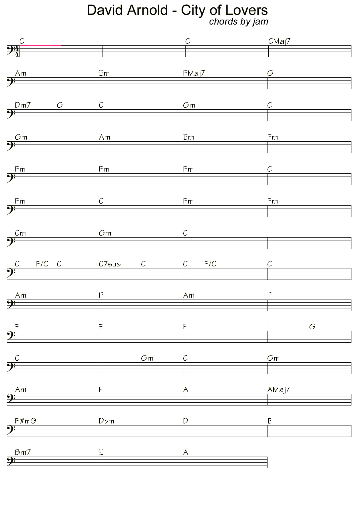 Los acordes son: C - Cmaj7 - Am - Em - F - G - Dm7 - G - C.