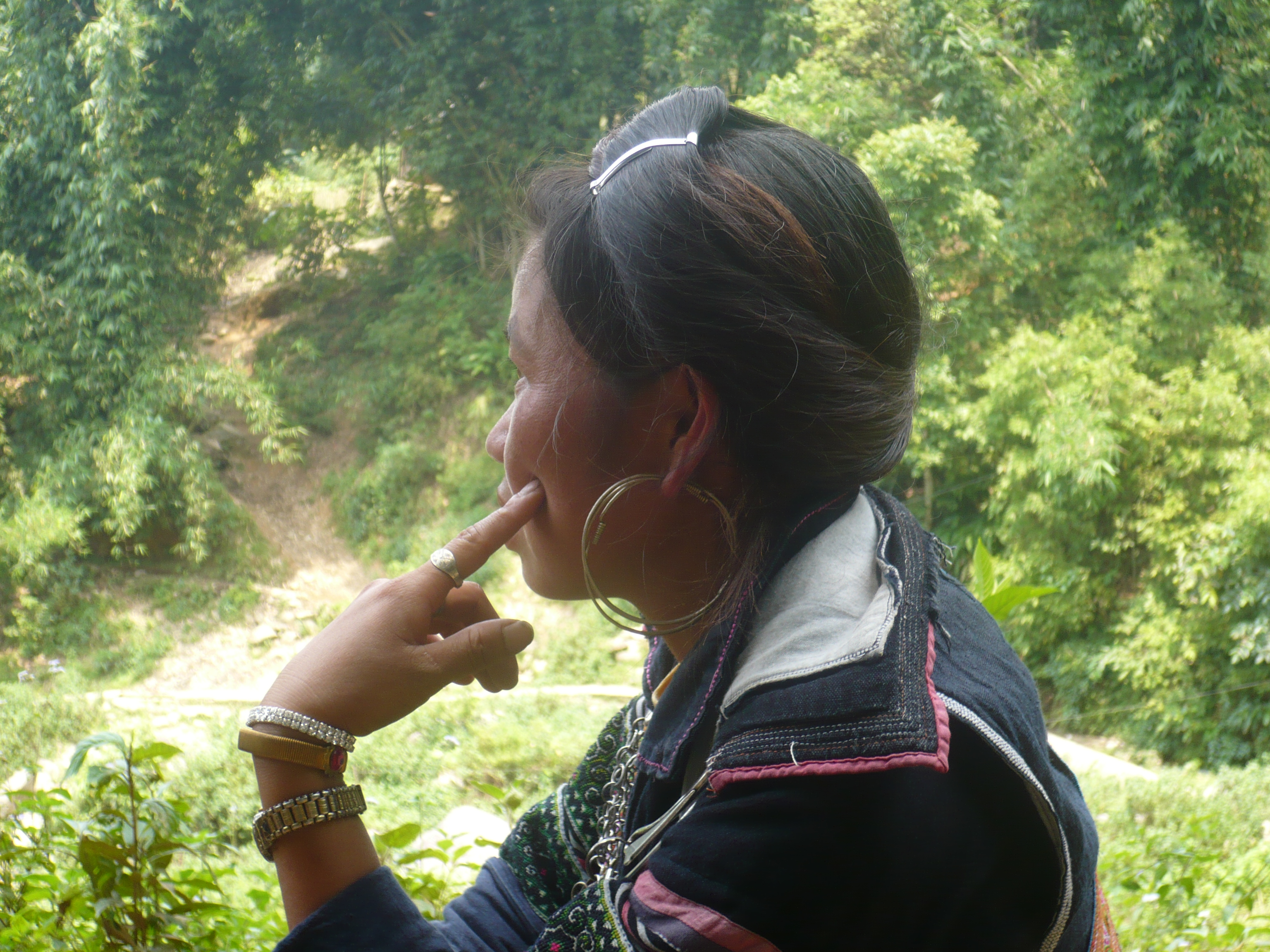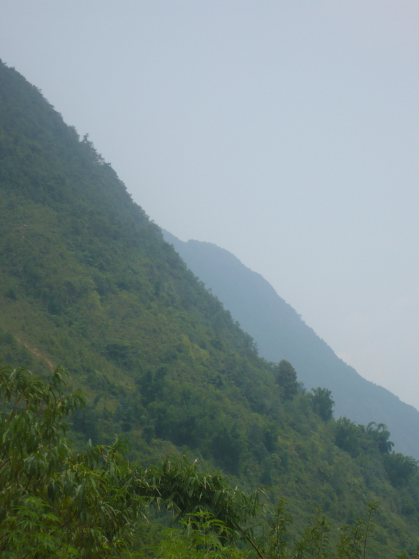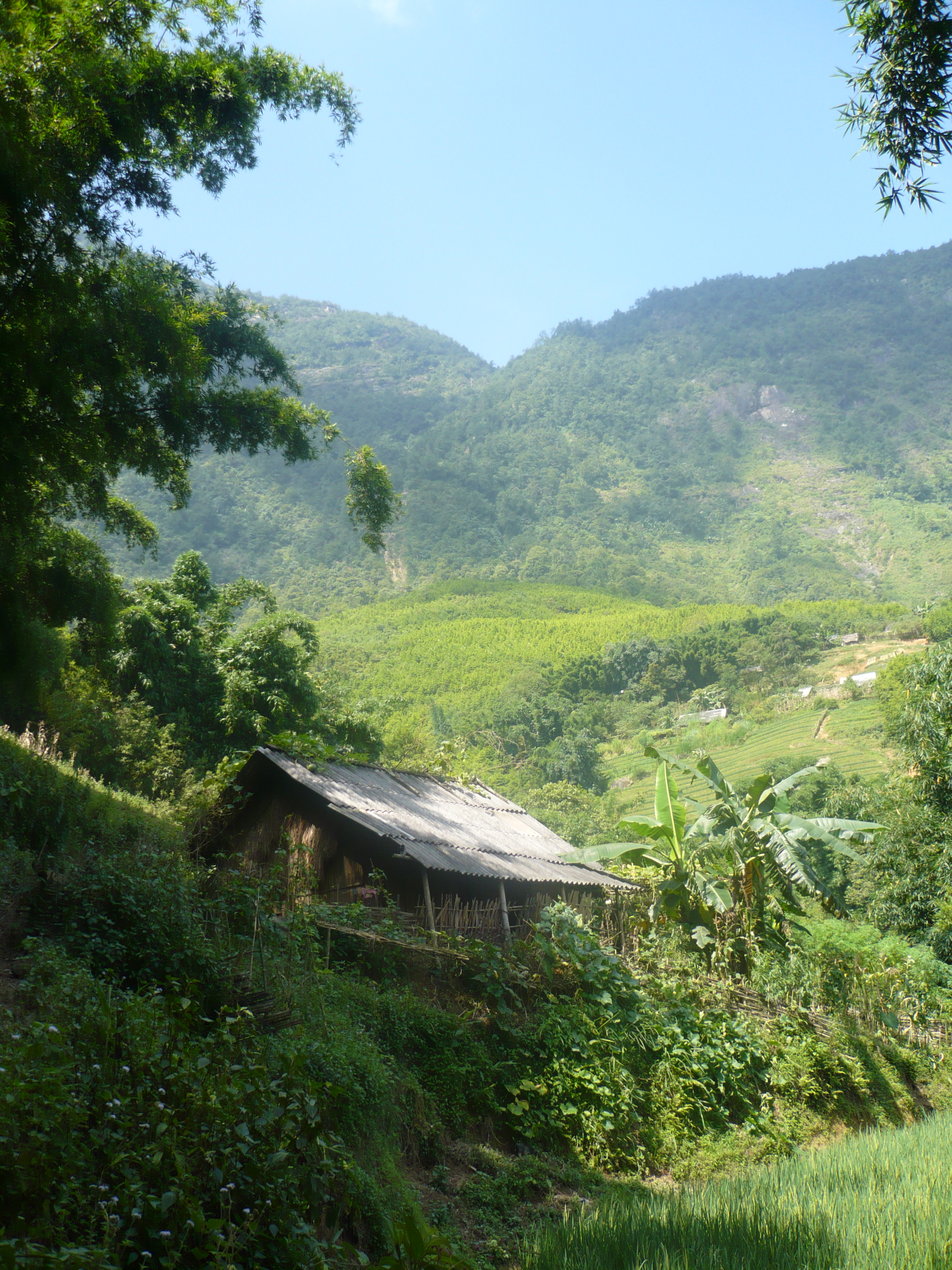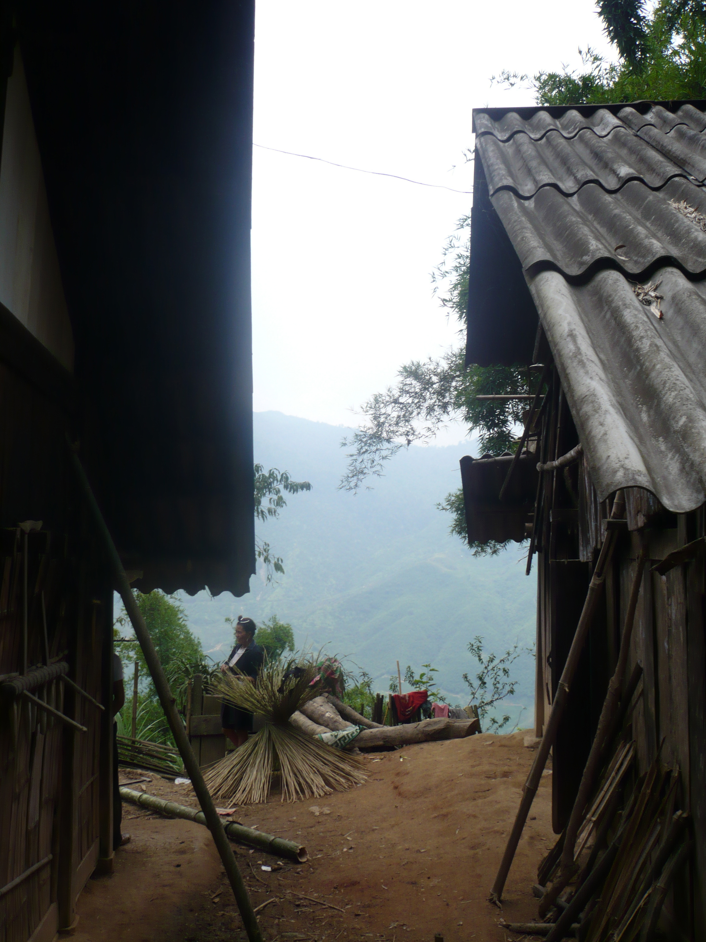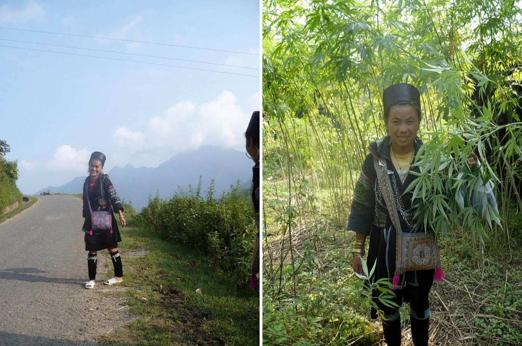 La bajada desde el poblado hmong era una gozada, y más con un punto de vino de arroz. Fijaos en la hmong del panorama, ahí ante la naturaleza.