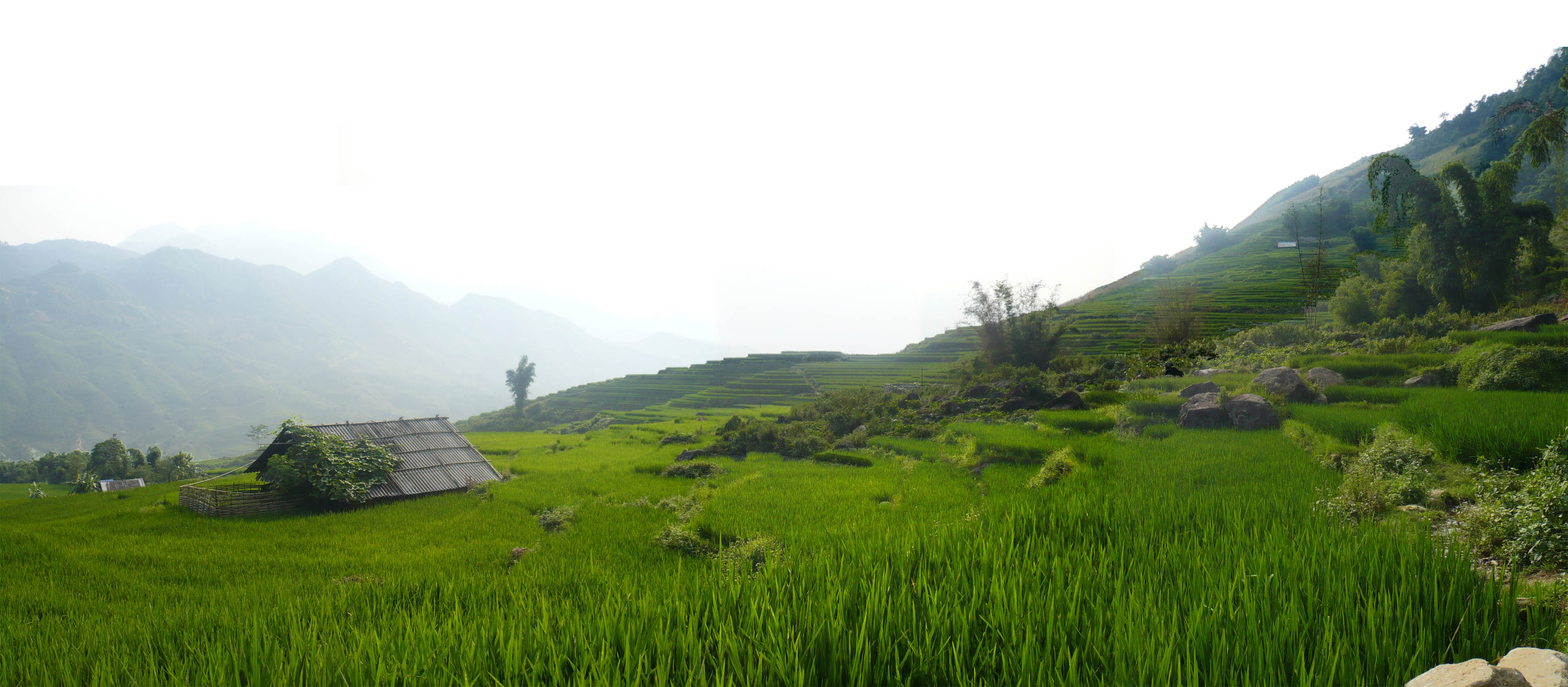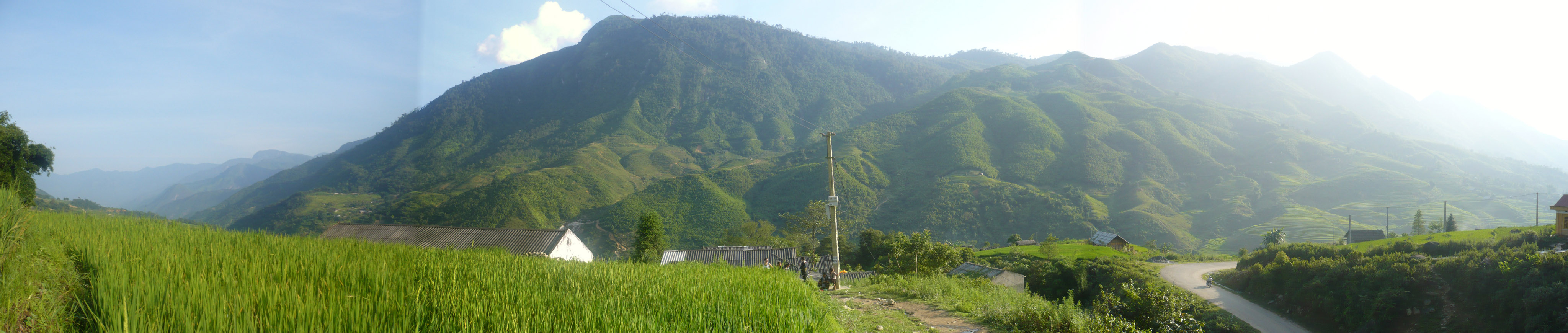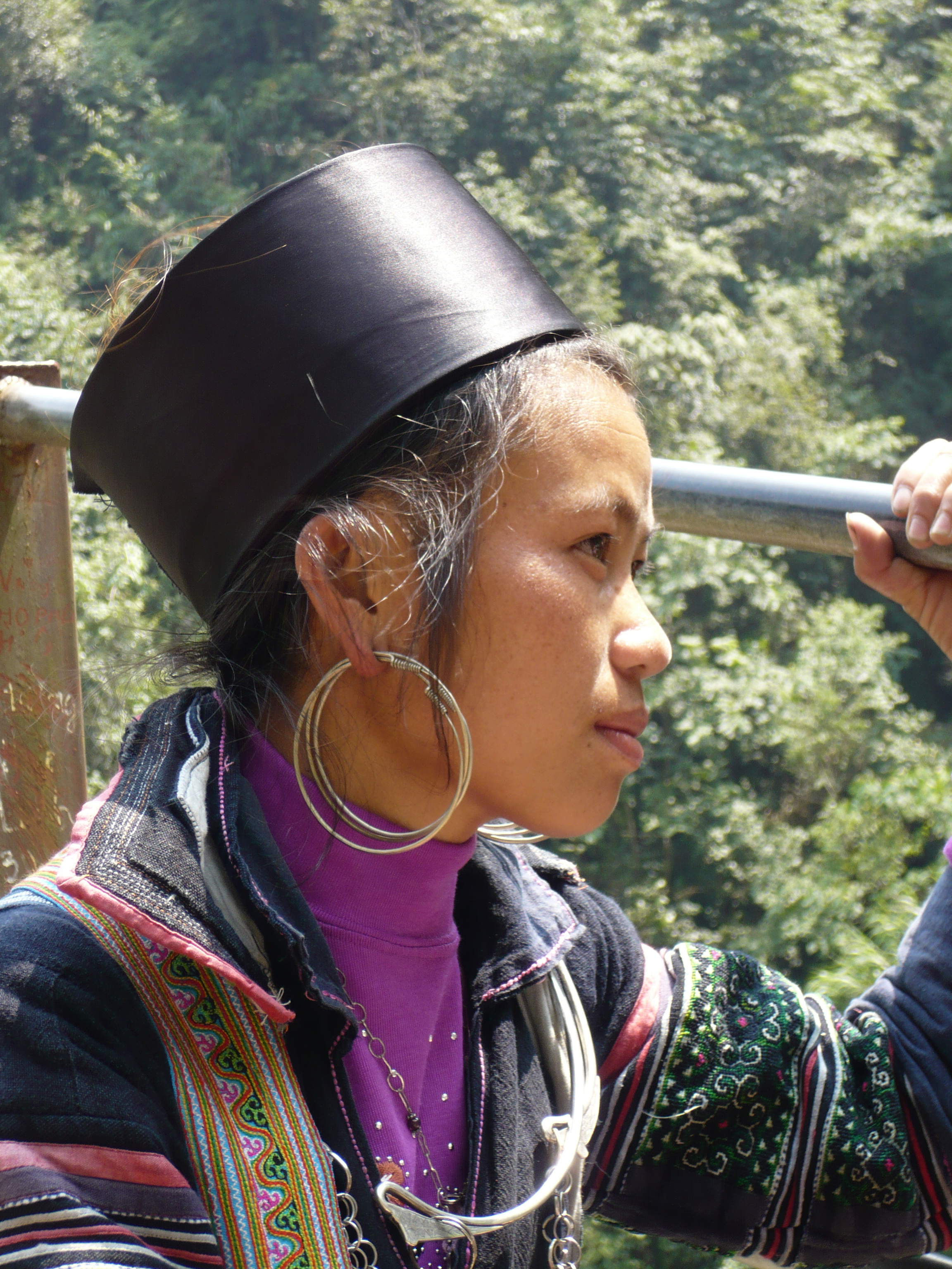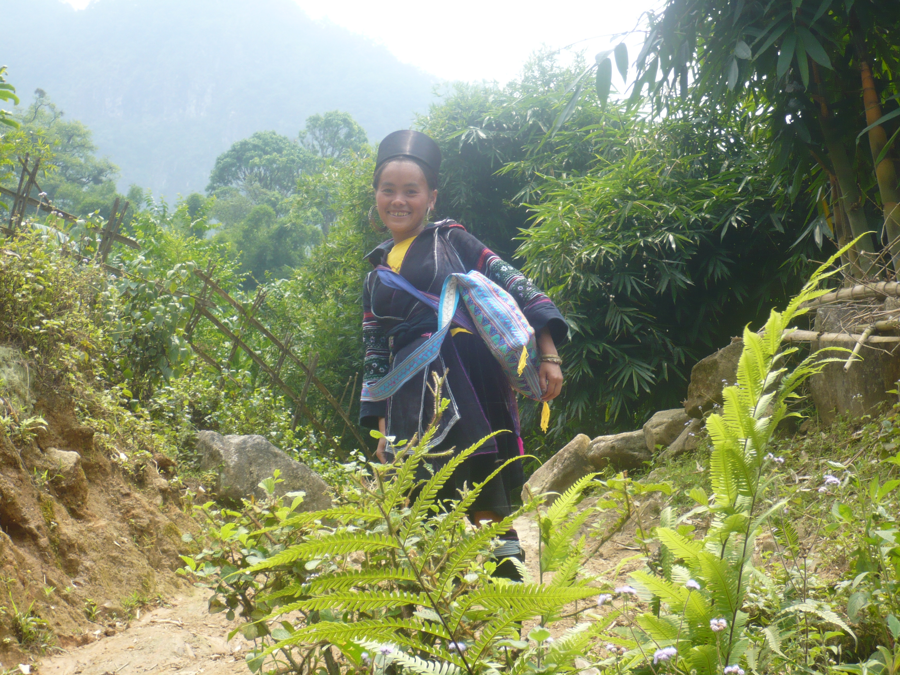 La bajada desde el poblado hmong era una gozada, y más con un punto de vino de arroz. Fijaos en la hmong del panorama, ahí ante la naturaleza.