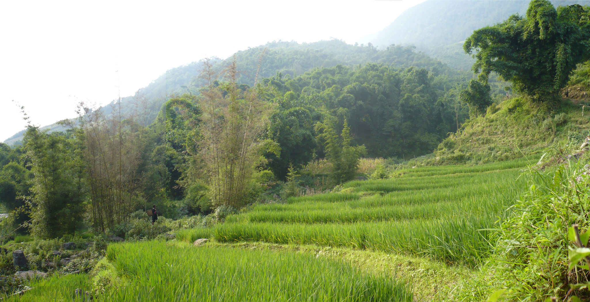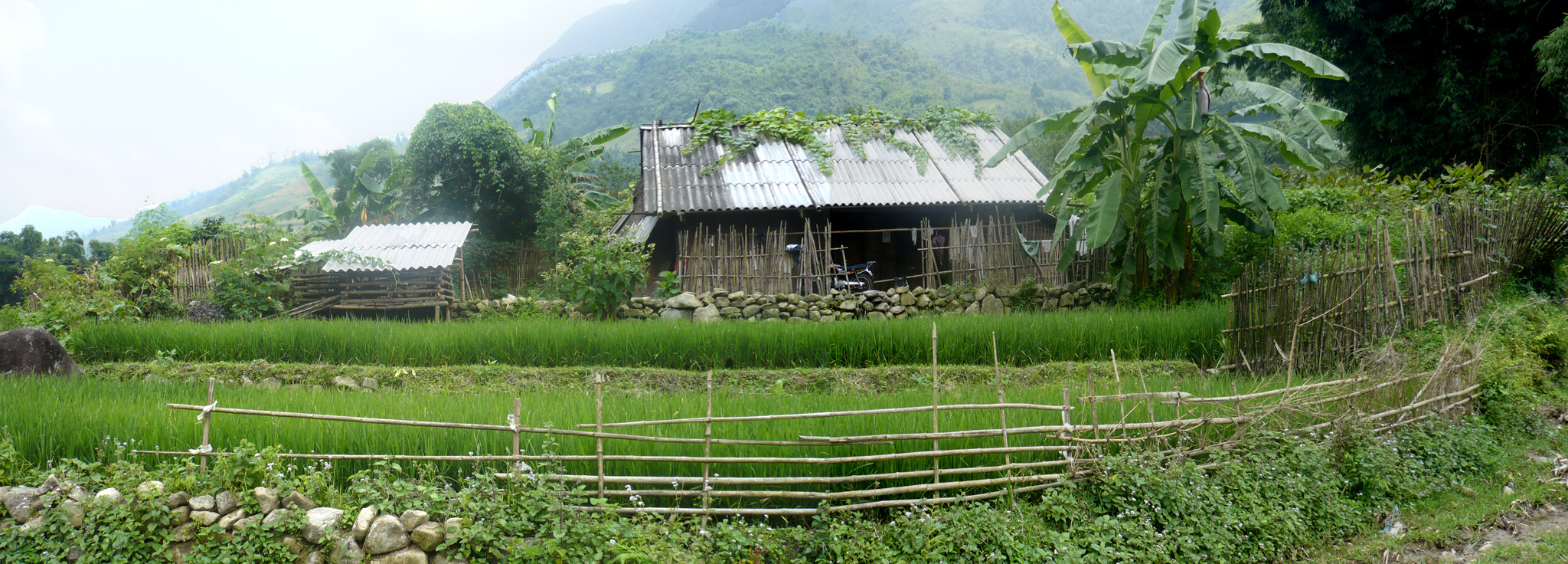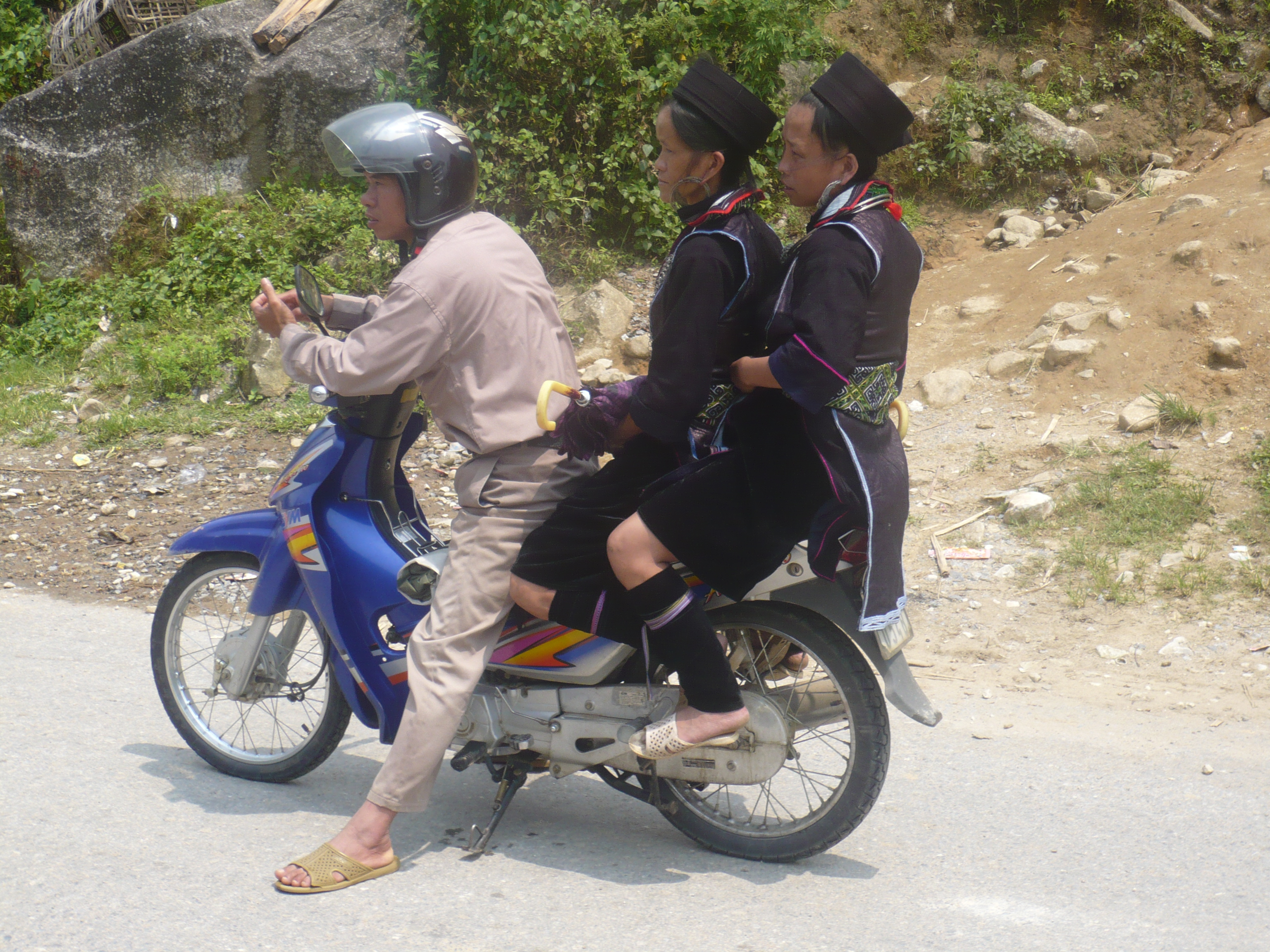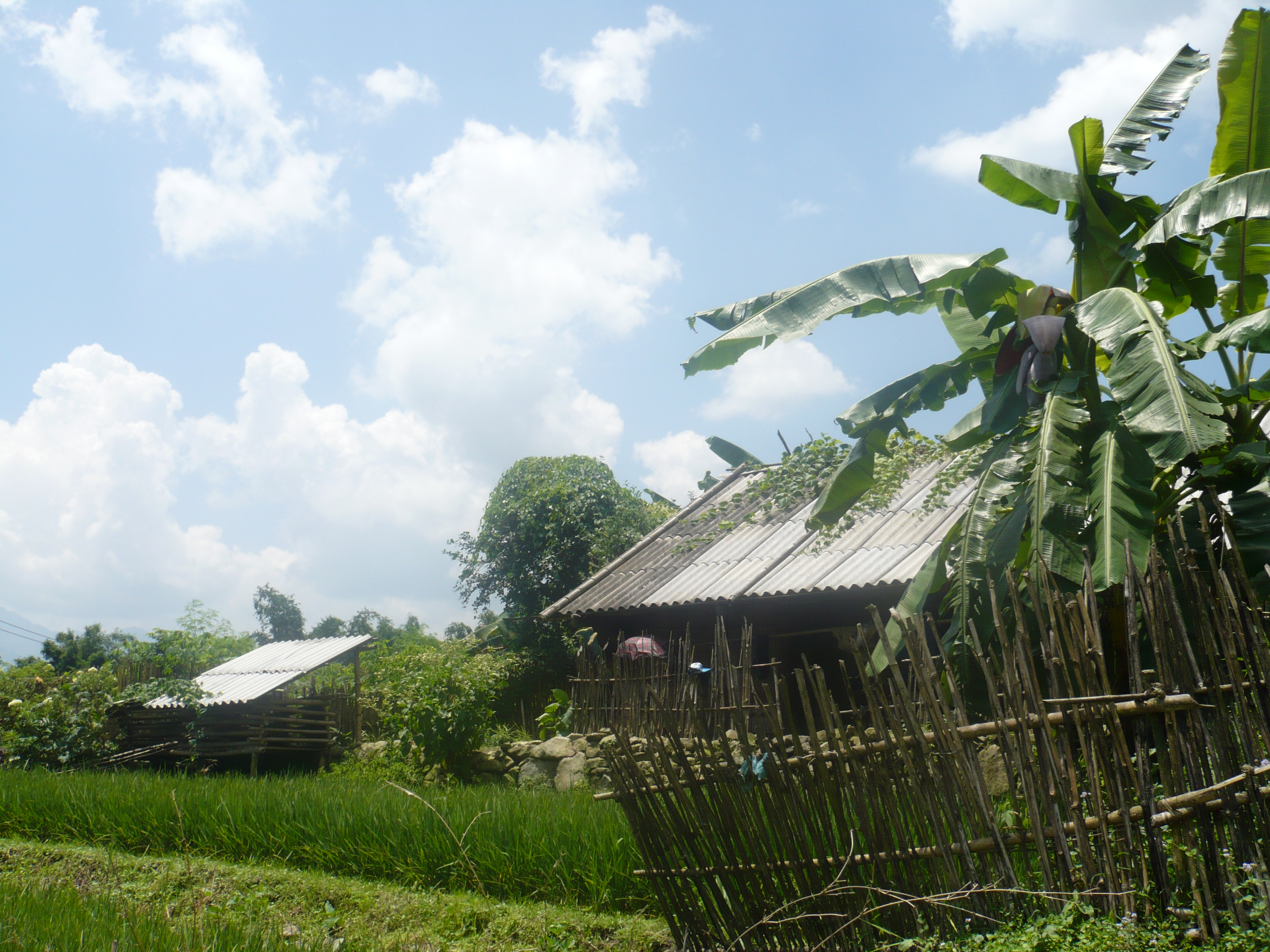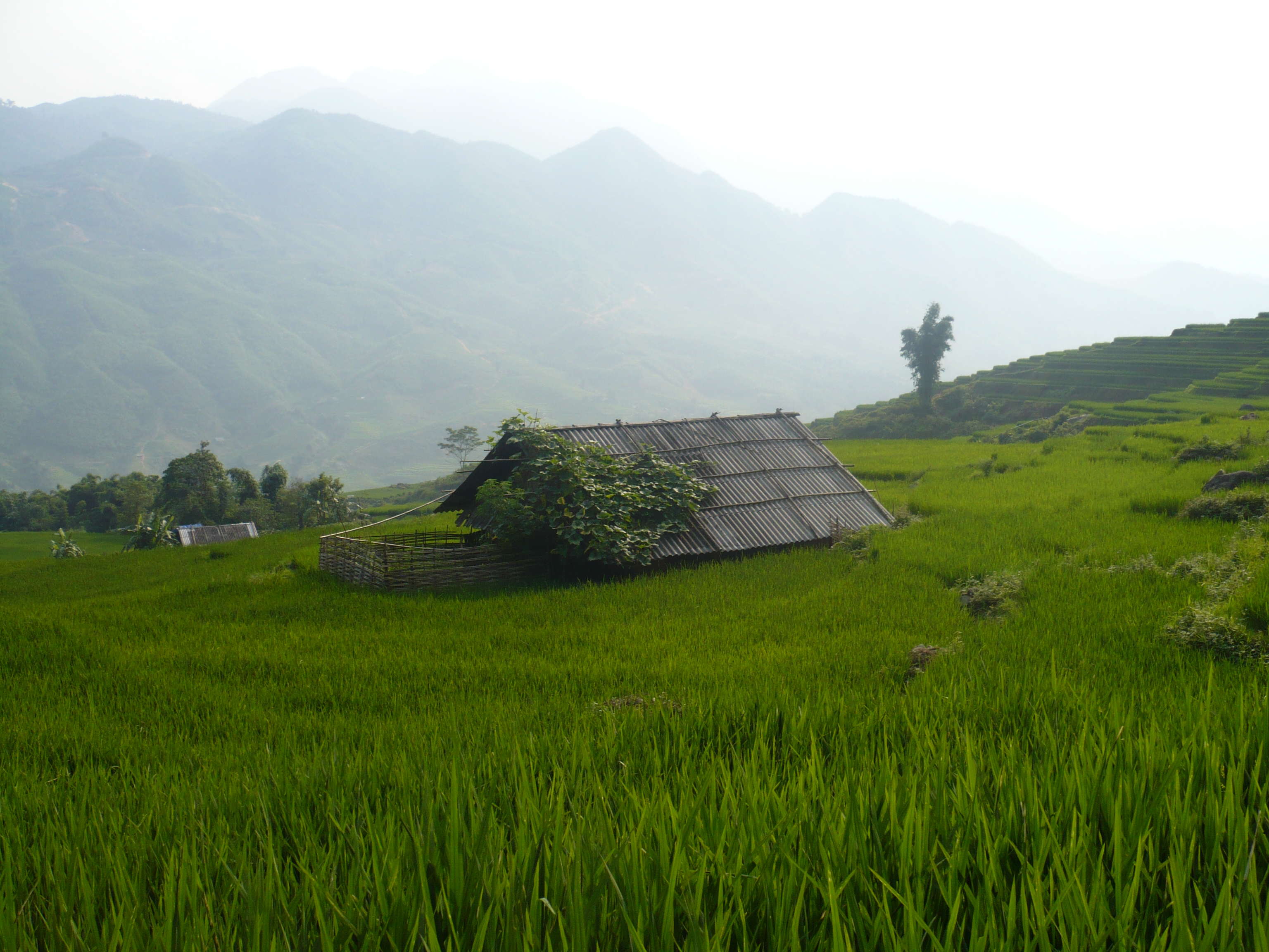 La bajada desde el poblado hmong era una gozada, y más con un punto de vino de arroz. Fijaos en la hmong del panorama, ahí ante la naturaleza.