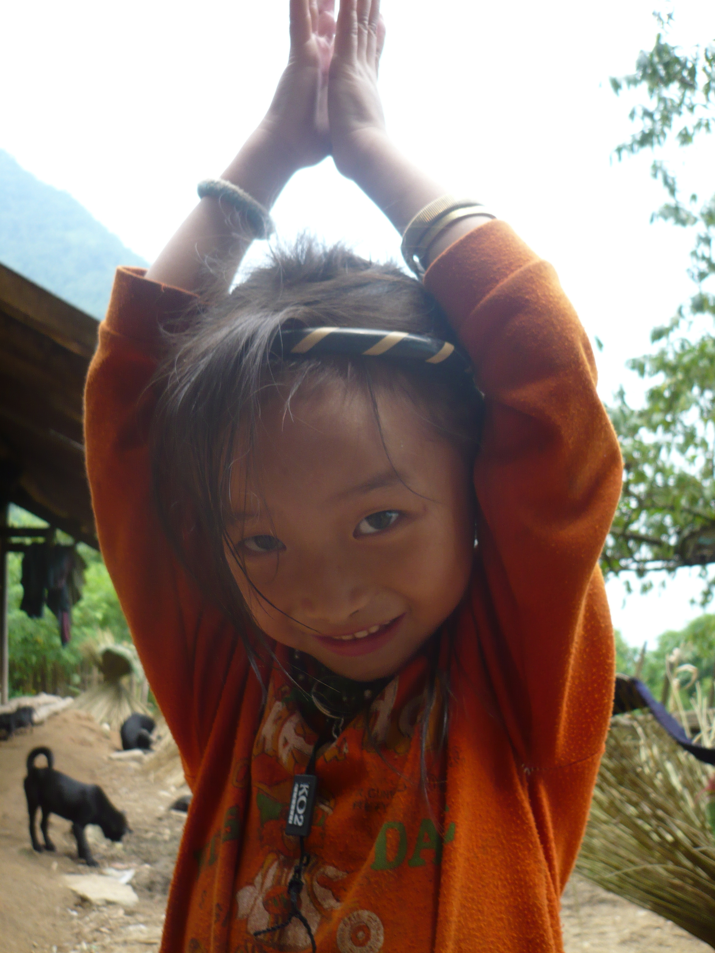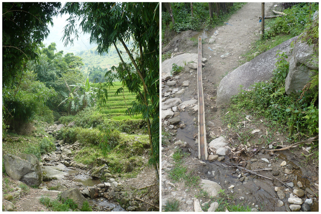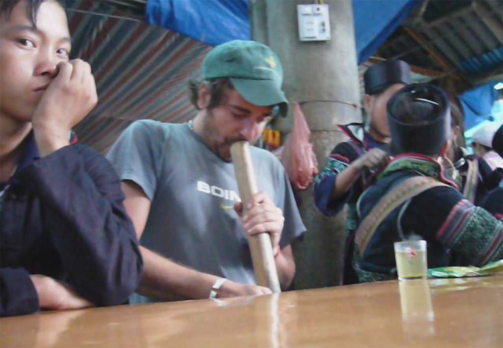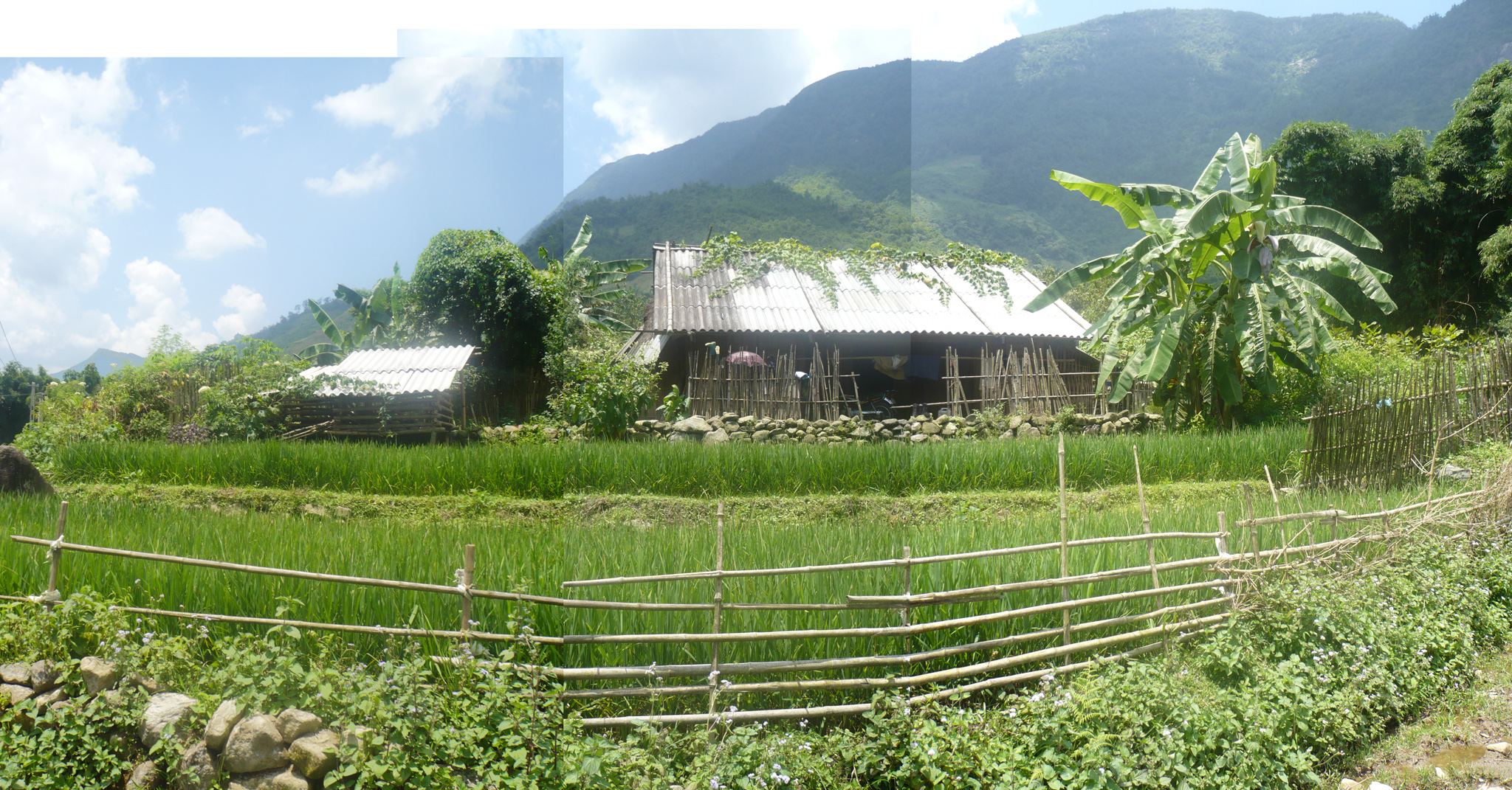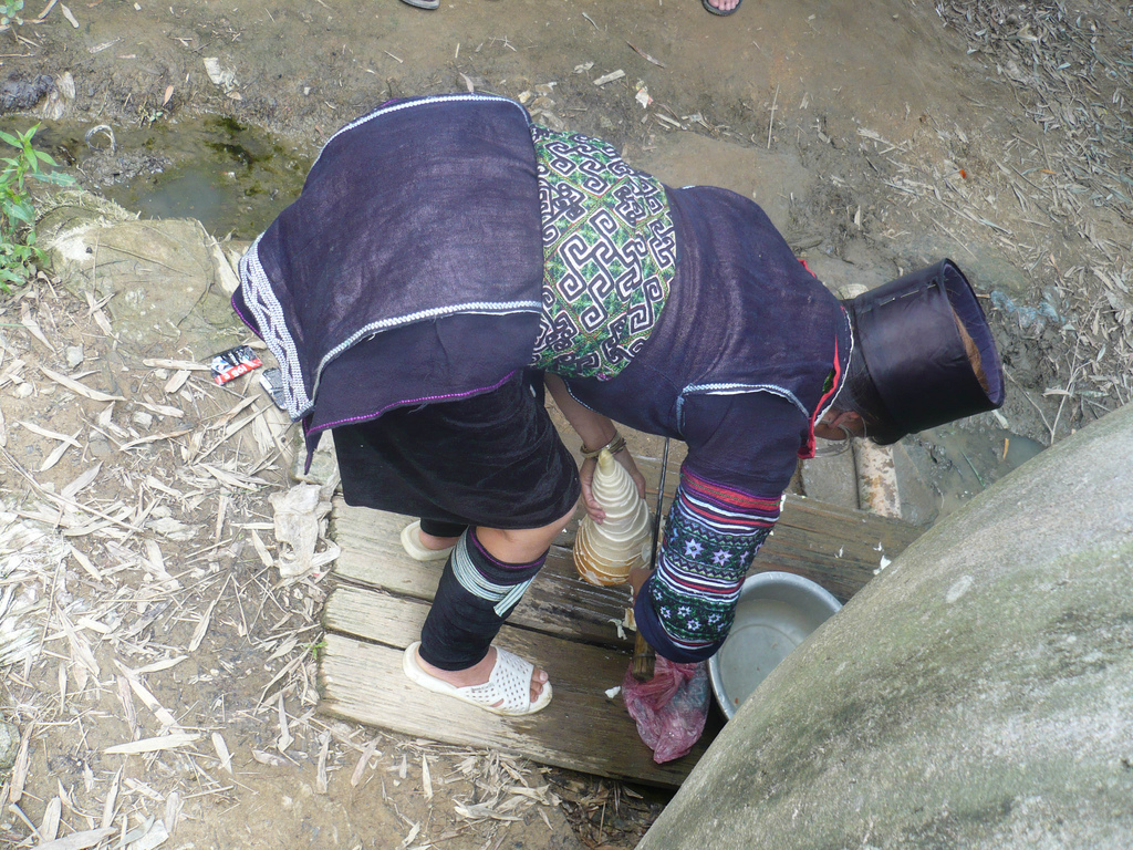 La bajada desde el poblado hmong era una gozada, y más con un punto de vino de arroz. Fijaos en la hmong del panorama, ahí ante la naturaleza.
