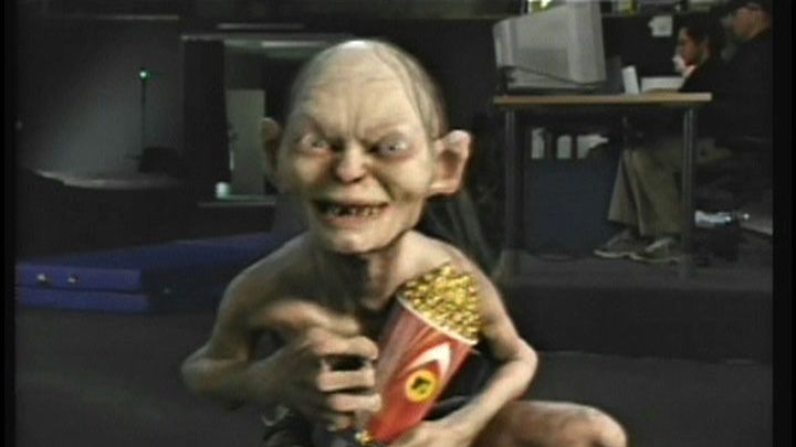 Bueno, el caso es que le dieron el premio al mejor personaje digital a Golum, y claro, fue el Andy Serkis a recogerlo, pero como estaba rodando pues lo hizo a través de video, y en pleno discurso de agradecimiento, apareció Golum, y le quito el premio todo cabreado, diciendo que el premio era para él, y que Andy era un sucio ladrón, gordo asqueroso, y un montón de insultos más. La verdad me reí bastante, lo que no me acuerdo es de dónde me baje el video, creo que estaba en las noticias de www.elfenomeno.com, pero hace ya la tira.