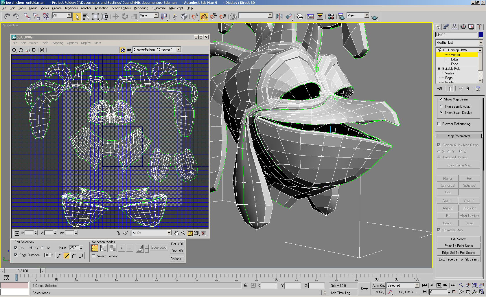 Me gustaría si alguien me puede decir de algún buen tutorial para texturizar personajes o caras con Unwrap, quisiera ya empezar a darle color y vida al gallo. Un saludo.