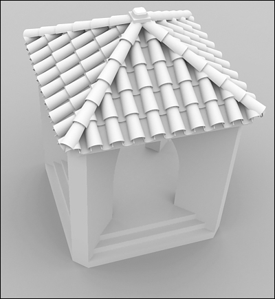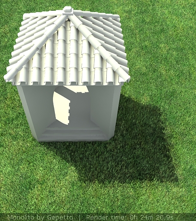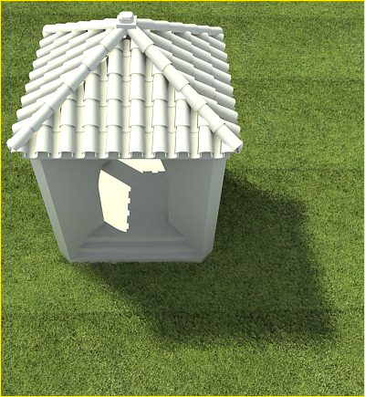 Bueno este modelo hice la tarde del domingo para ver cómo quedaban las tejas modeladas en lugar de con un Vray displacement.