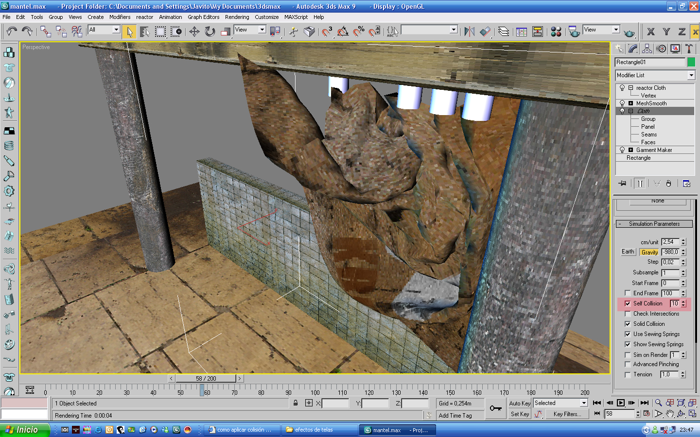 Hola a todos, tengo un problema con 3ds max9, a ver si podéis ayudarme: He creado una animación de una cortina que se abre rápidamente, al abrirse tan rápido se produce una especie de latigazo con el modificador Cloth, (ya sabéis cómo va) que pliega la cortina y hace que se golpe a si misma.