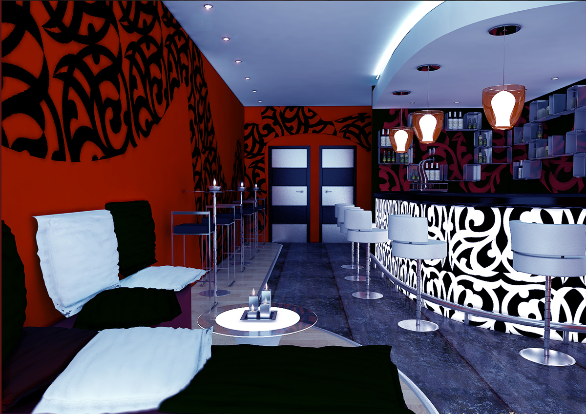 Lo veo muy chulo, ese toñillo frío de bar de copas está bien conseguido. Me encanta el detalle de las velas encendidas, le da un poco de calidez entre tanta frialdad. Lo que cambiaría sería el mapeado del suelo de la barra, lo veo raro.