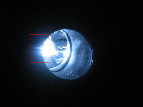 Un destello similar al de un foco de antiniebla o un foco de campo de fútbol.
