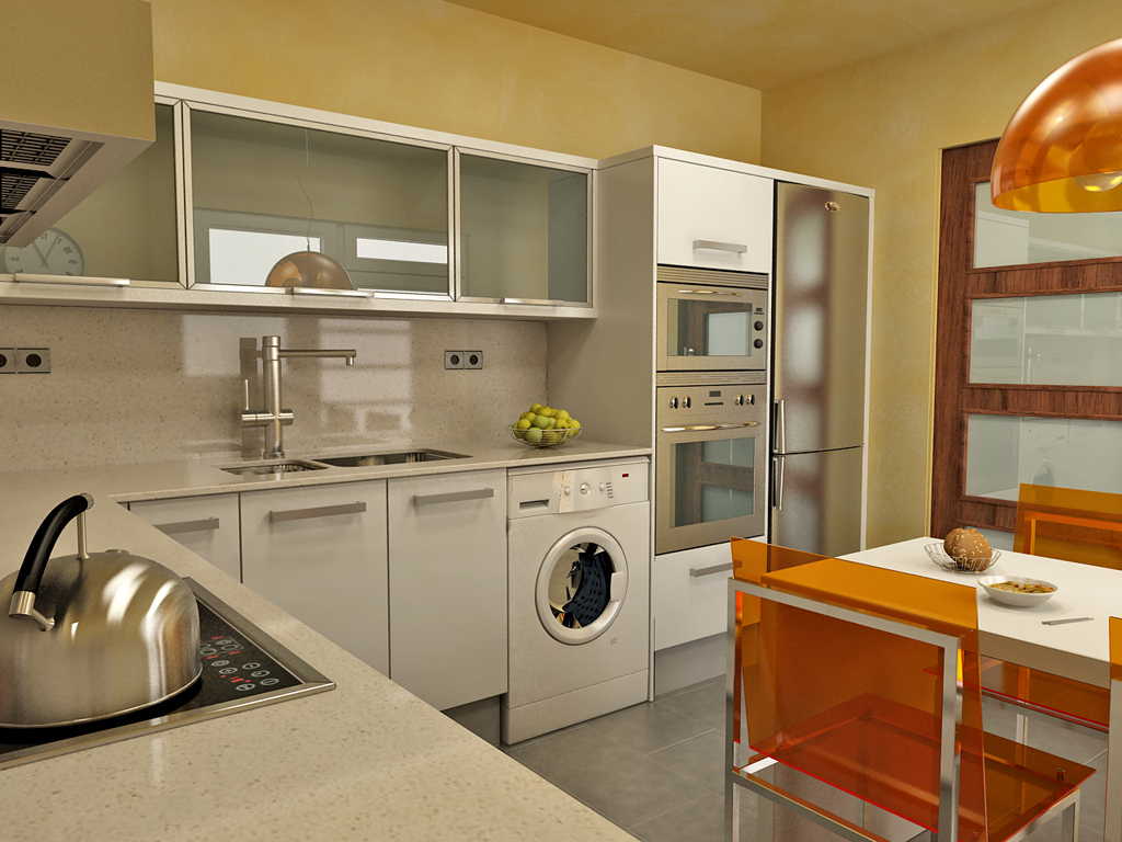 Por último, en la zona de cocción te ha quedado todo un poco oscuro pese a las luces encendidas. ¿has probado a tocar niveles en Adobe Photoshop y subir la iluminación general, aunque se te que me un poco alguna zona? Creo que le aportaría algo más de vidilla.