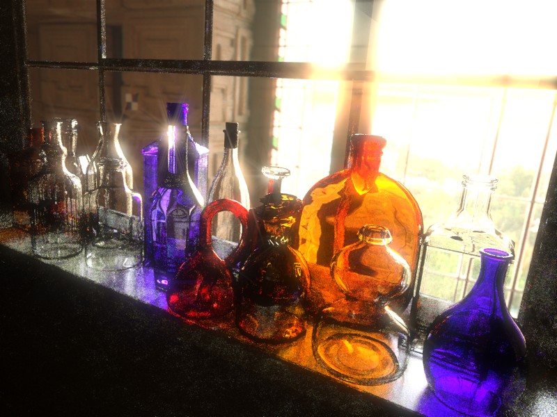 Está muy bien (aunque le falta tiempo de render). Es una pena que no se puedan conseguir esos brillos especulares solo con el sol yo intenté renderizar esa misma escena con luz del sol y al final tuve que desistir, porque en Indigo no se puede hacer eso.