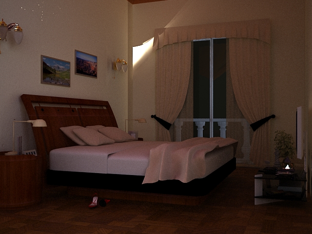 Aquí está el último render del dormitorio, sé que se puede mejorar mucho más, pero por ahora no puedo por ahora este avance y este final. Les gusta?