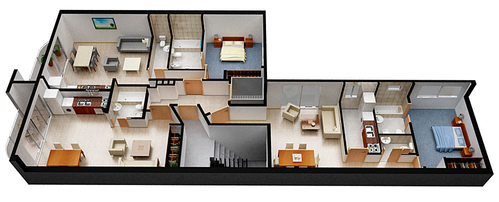 Tengo una duda, el departamento más pequeño, el de la esquina inferior izquierda, no tiene habitación? Ni siquiera una camita? Me parece extraño en comparación con los otros dos. Saludos.