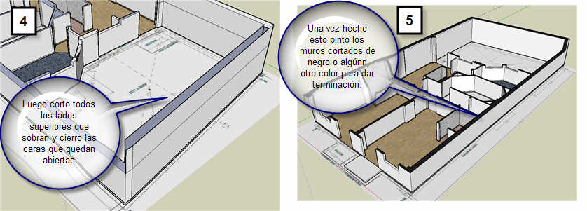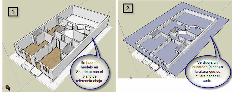 Otra cosa más: Esta forma de trabajo esta buena porque en SketchUp guardo 2 archivos, el archivo completo y el que tiene los muros cortados, entonces si me piden un render de algún ambiente solo hay que ponerle un techo y tirar render y no mucho más. Saludos.