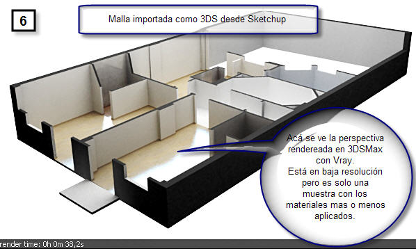 Es muy útil este modo de trabajo porque el SketchUp es muy práctico para texturizar y mapear mientras que el max es más complicado y en el caso de cambiar algo en 3dsmax habría que trabajar más tiempo para obtener el mismo resultado. Gracias a todos. Saludos.
