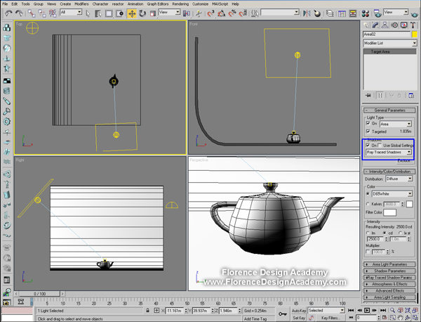 Lo que sucede es que la atenuación inversa al cuadrado de la fotométrica esta matando la luz antes de que toque tú tetera y por eso no se aprecia la diferencia. Suerte.