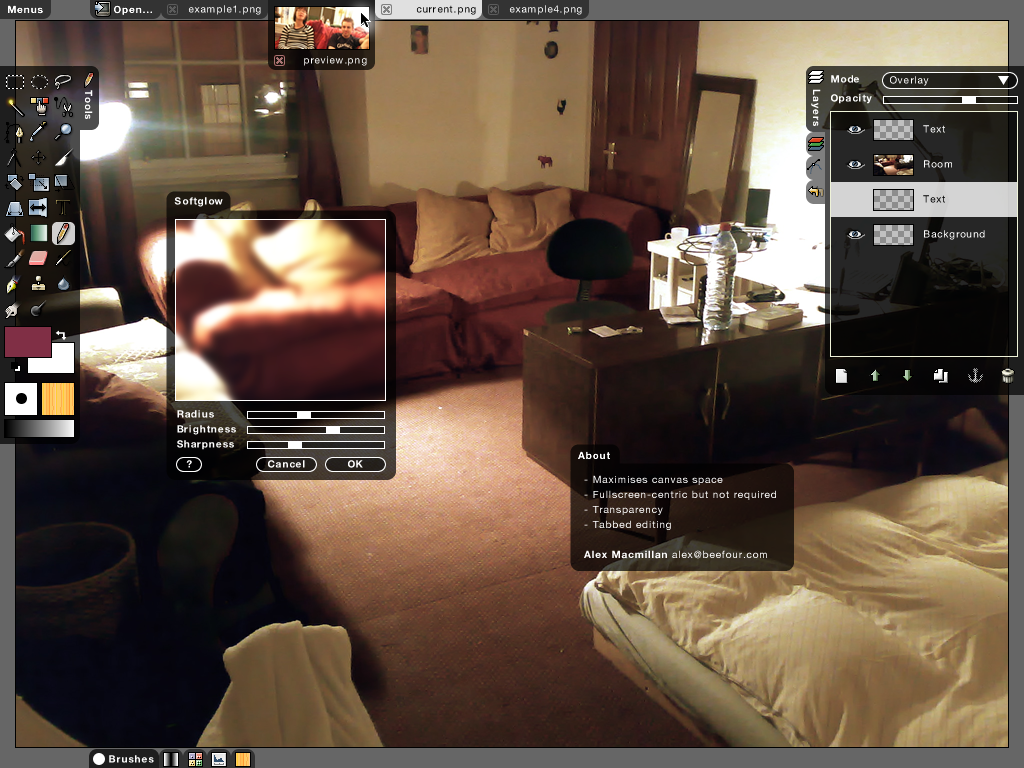 Gimp UI brainestorm: fullscreen + transparency….