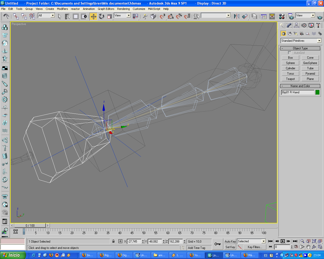 Para hacerlo, se puede usar un controlador Euler en el canal libre de rotación de la palma del bípedo. A partir de ahí, con Wire Parameters, se intenta vincular ese canal con el parámetro twist end angle de un sistema Spline IK añadido. Suena lógico: girar la palma y que eso controle el twist de los huesos personalizados. El problema, y aquí viene lo curioso, es que el bípedo es más cerrado de lo que uno quisiera. No acepta conexiones externas fácilmente, por eso el wire no tiene efecto aunque parezca bien hecho.