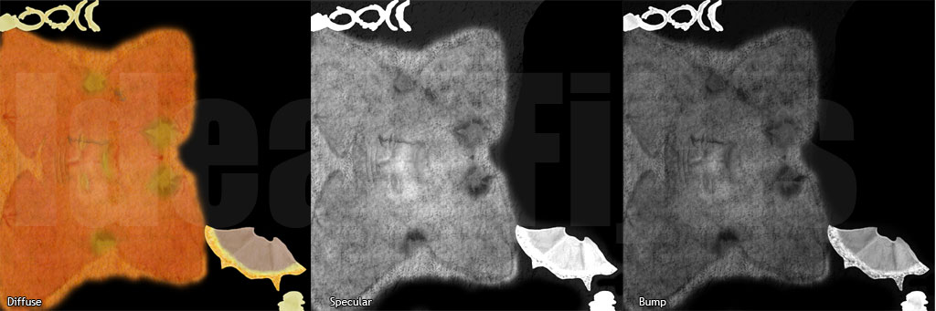 Luego para el tema de los Shaders y tal sacamos unas fotografías a una naranja que usé como base para pintar los mapas, todo tiene básicamente un mapa de color (Diffuse), un Specular y un Bump (en la mayoría de los casos el especular es un Bump modificado). No tiene mayor misterio, son materiales muy sencillos, pero para lo que se necesitaba creo que dan el pego.