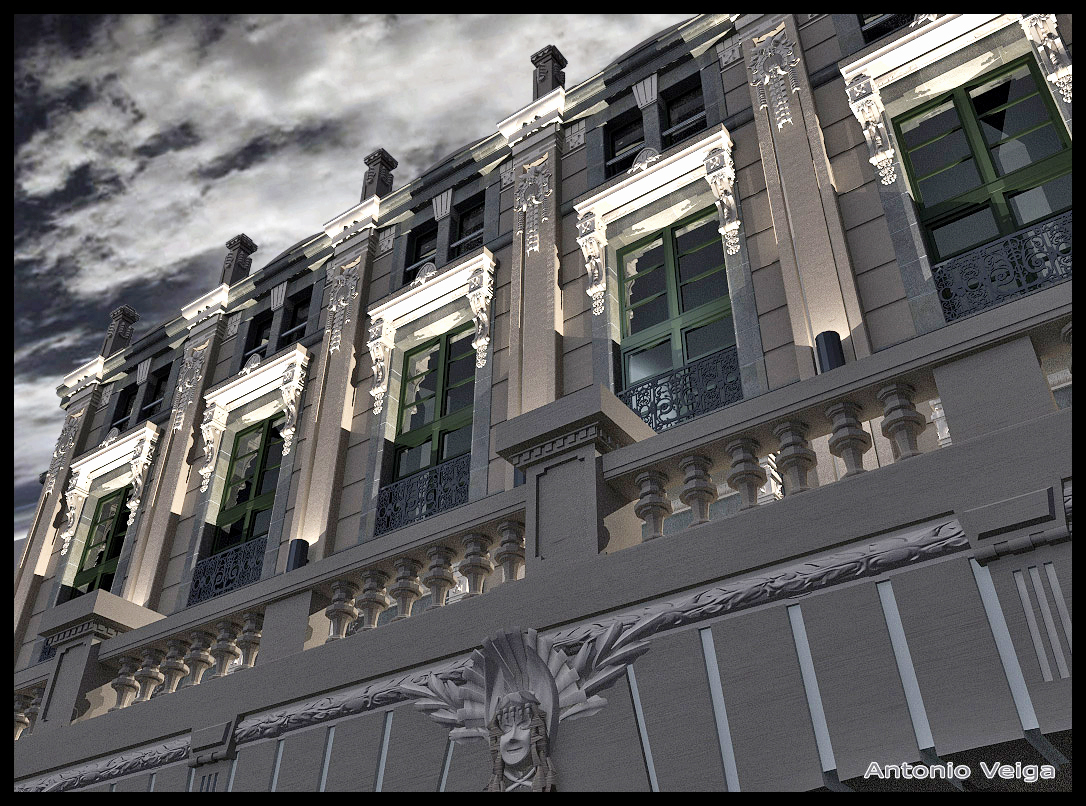 Hola Jasp3d.- Quizás los focos estén demasiado fuertes, y no les halla dado la suficiente suavidad, pero hay que pensar también que son focos potentes y que están demasiado pegados a la fachada como para poder suavizar sus bordes. Las texturas son fotografías del sitio en cuestión, acaba de rehabilitarse y apenas tiene detalles a la vista que indiquen paso del tiempo suciedad, sé que sería mucho más bonito ensuciarlo y matizar colores y suciedades en esa fachada, pero es un trabajo que debía ser fiel.