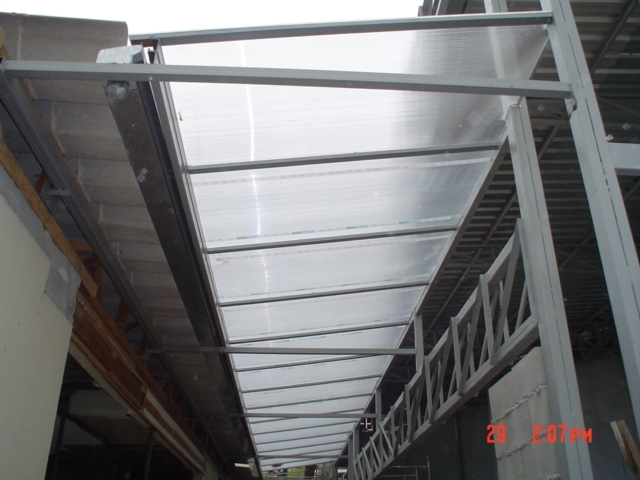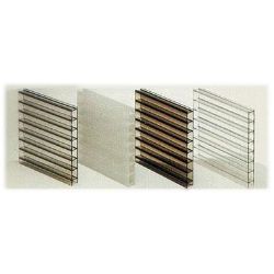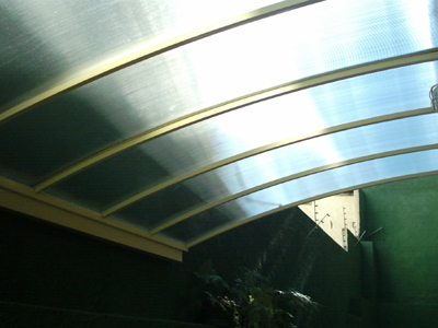 Mas que con la modelada, tienes que jugar con el IOR del material. Busca en Google el IOR del policarbonato alveolar.
