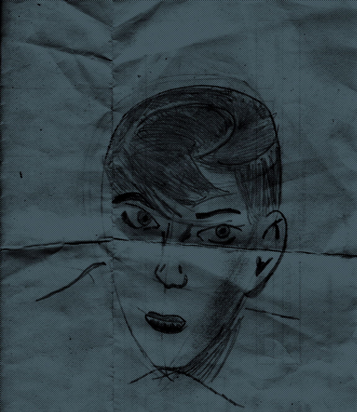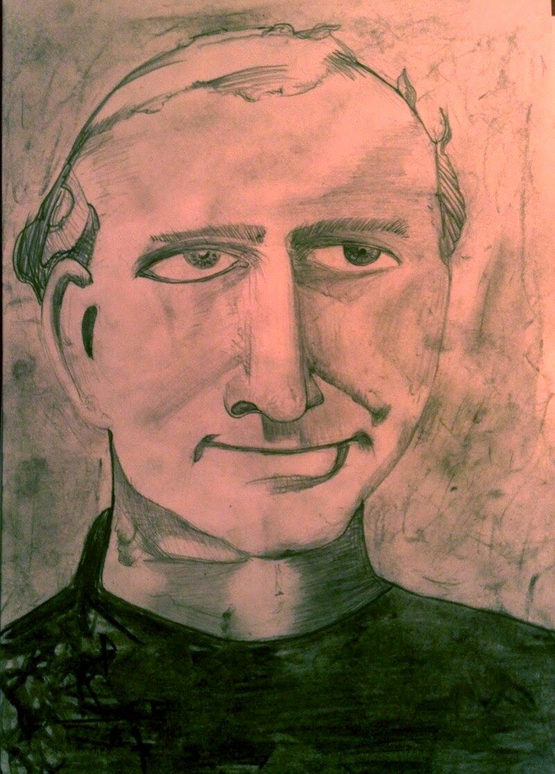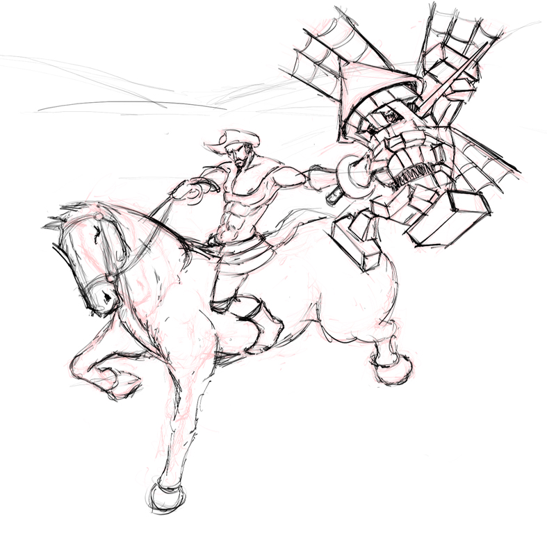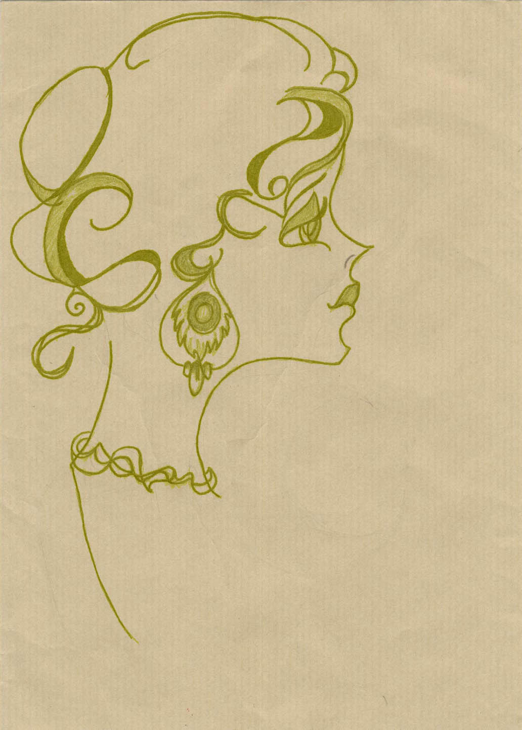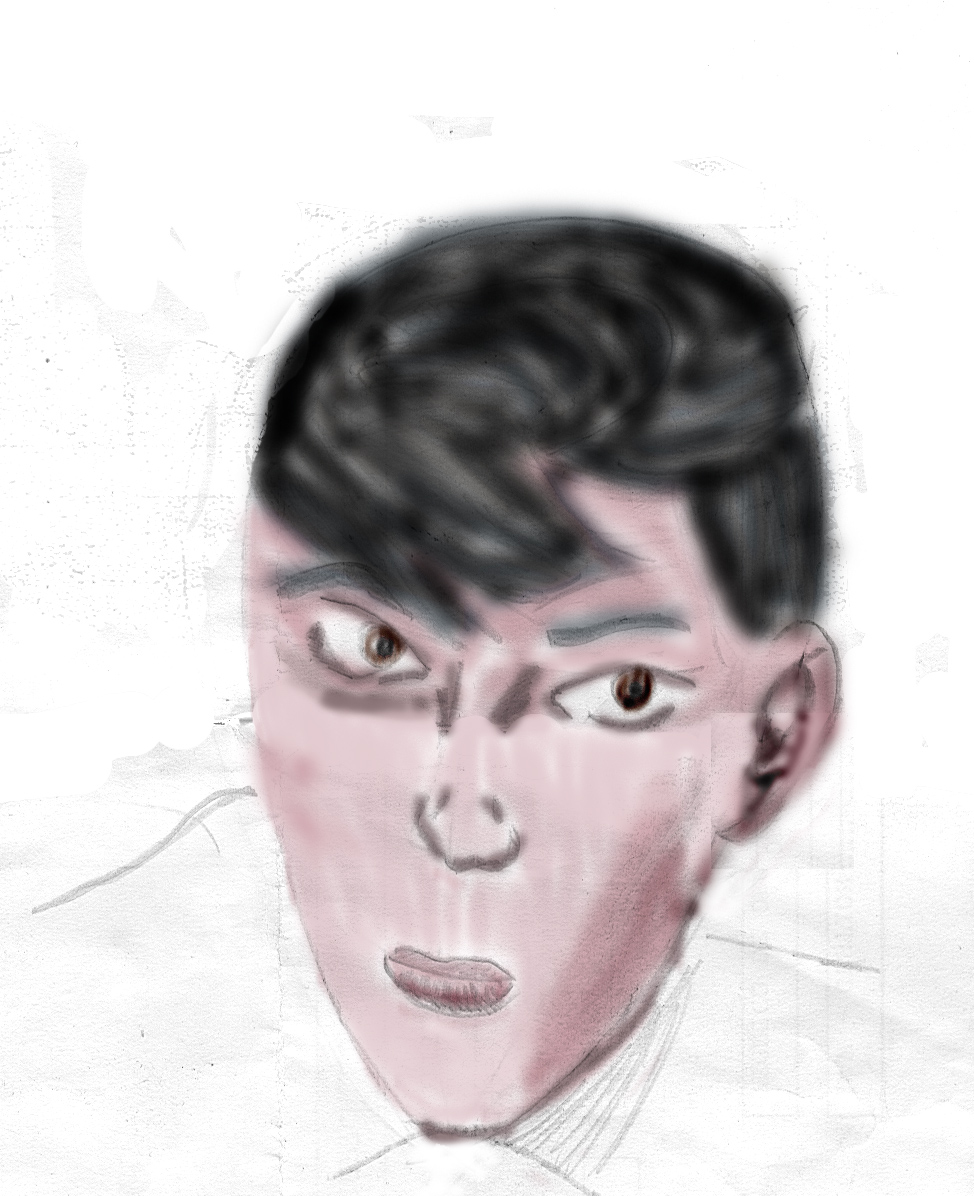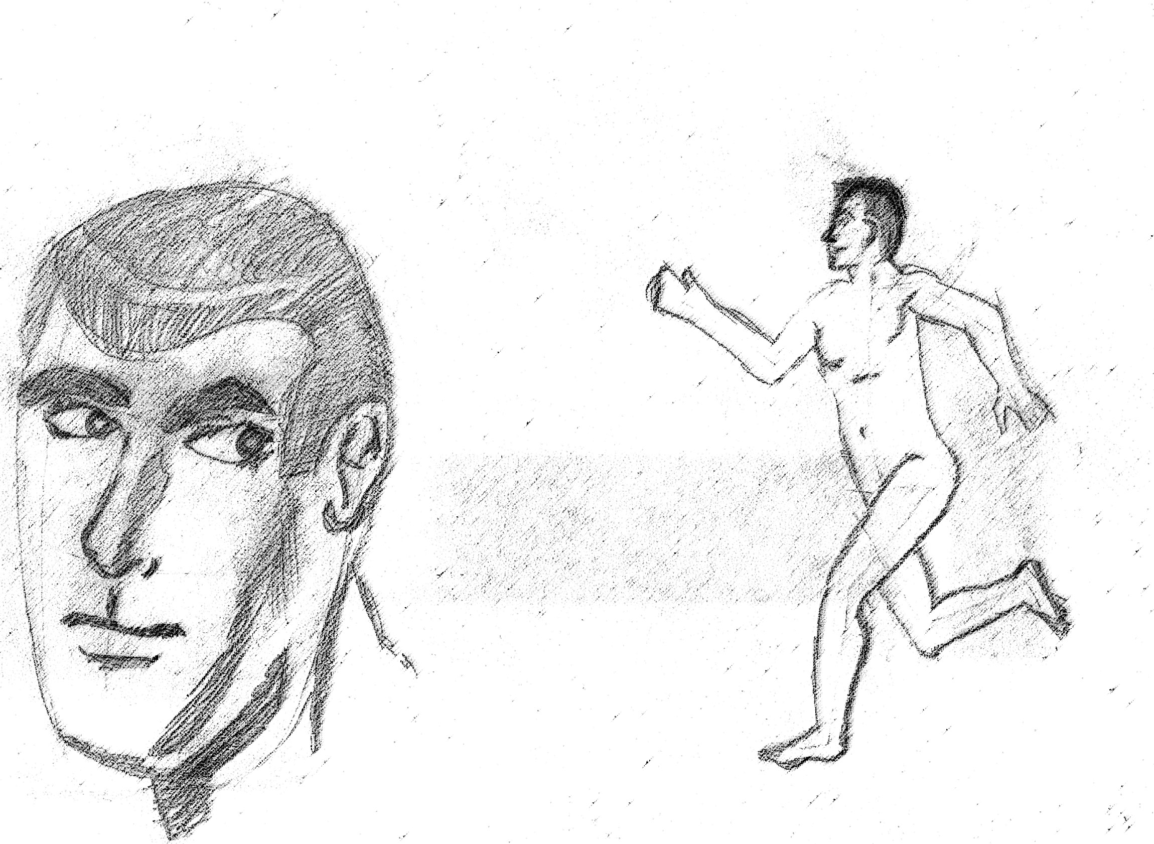 Un dibujo rápido realizado en base a una fotografía apenas legible.