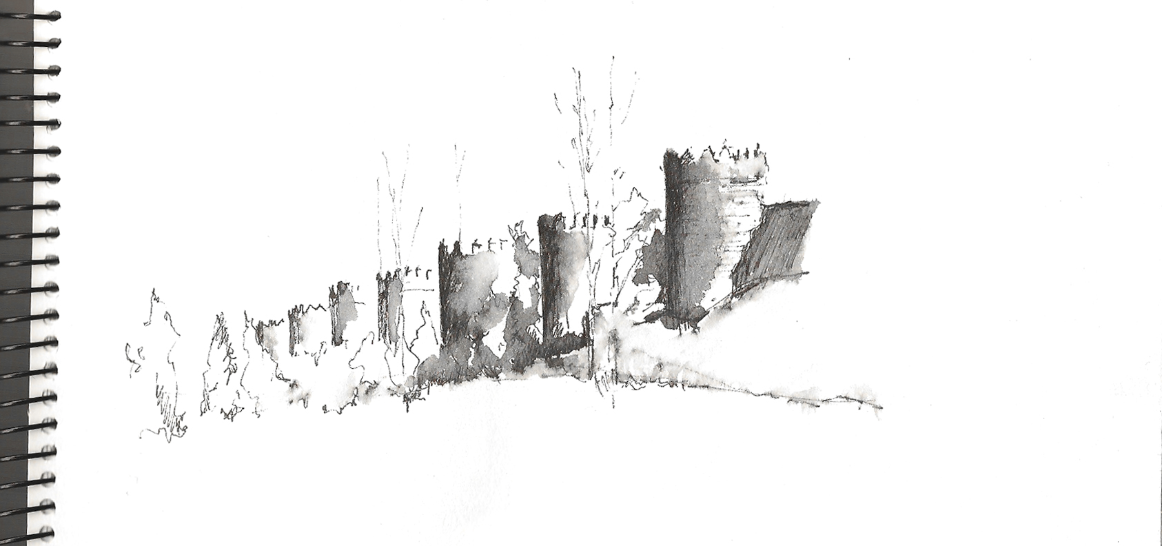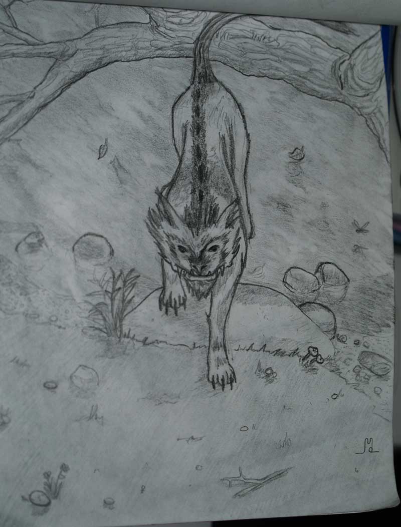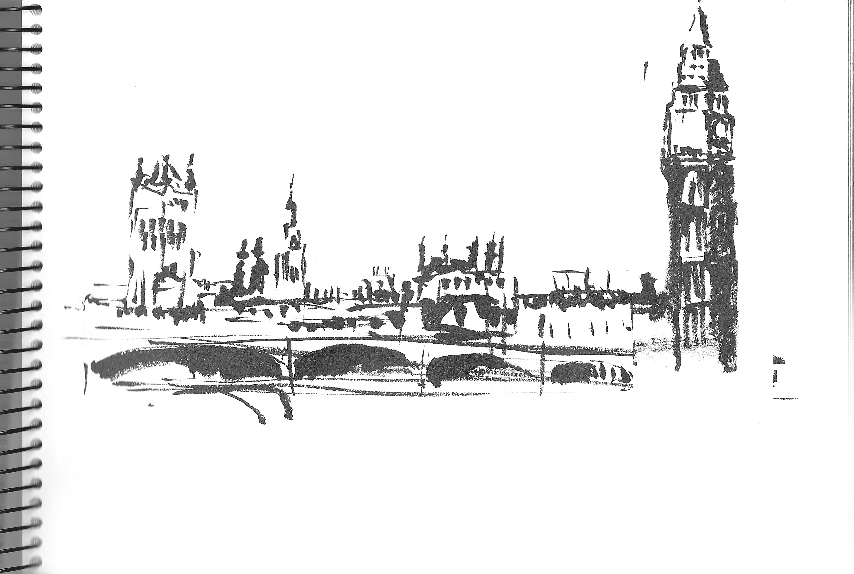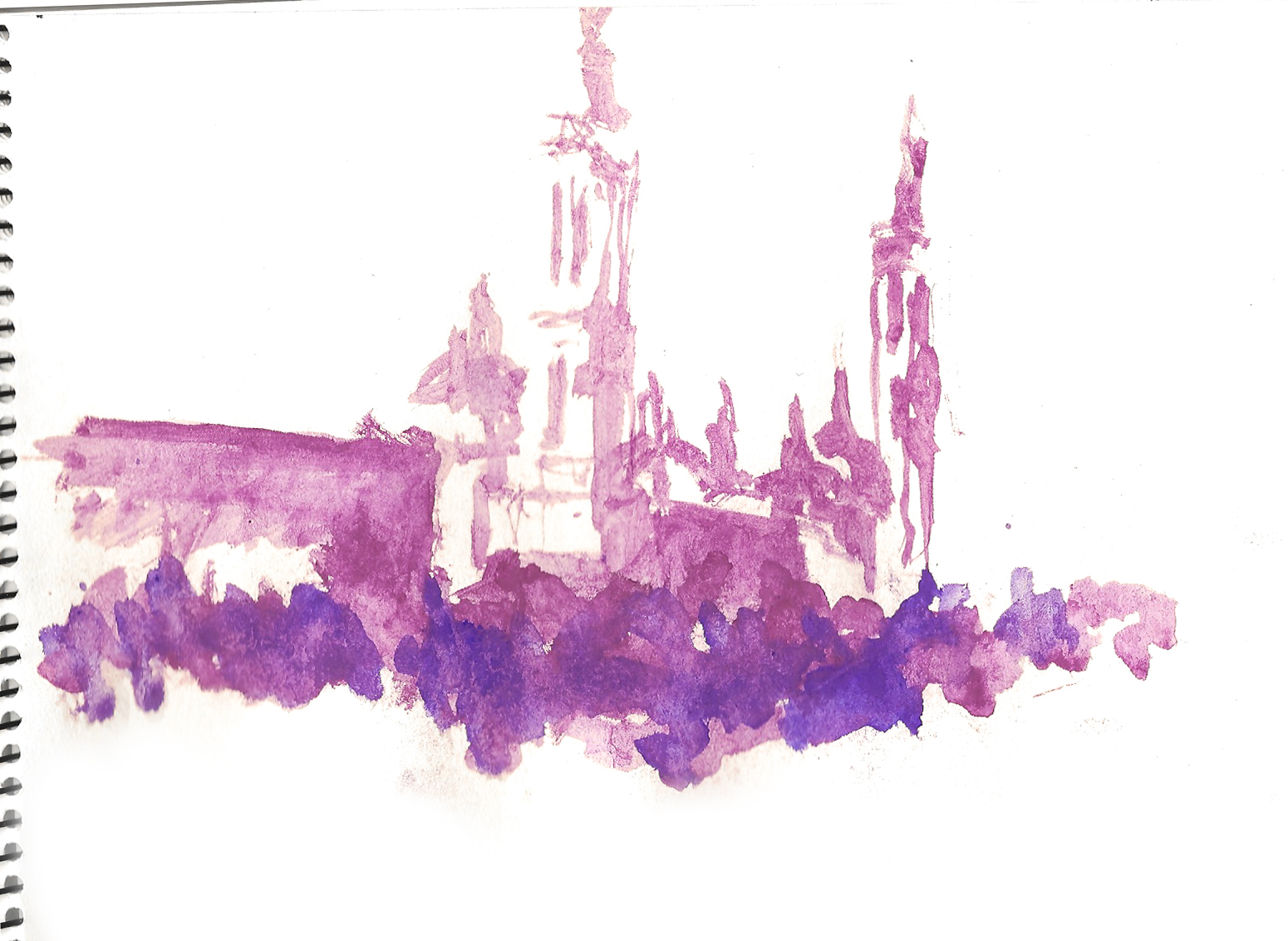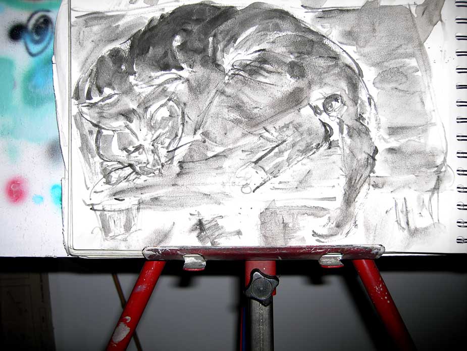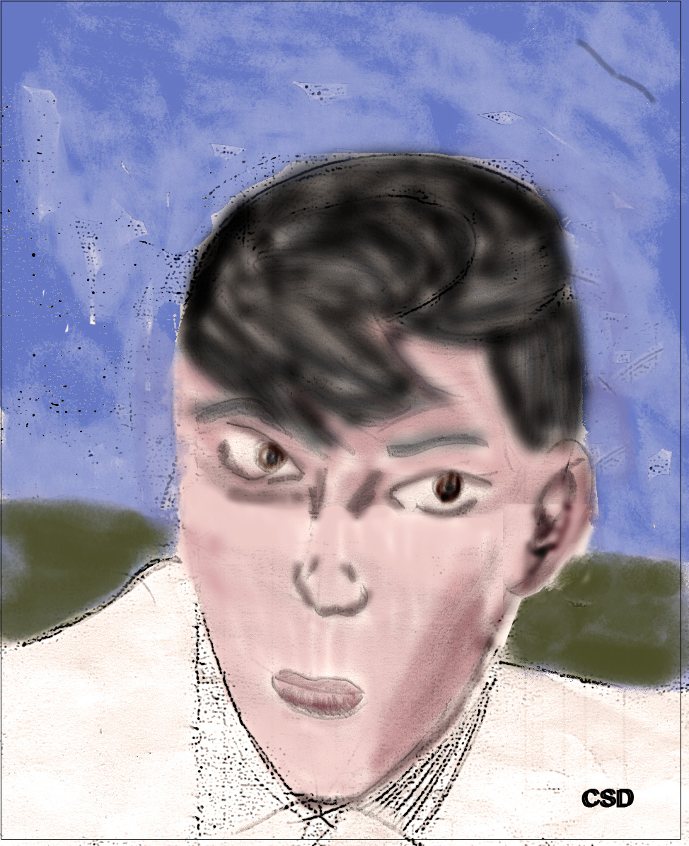 Un dibujo rápido realizado en base a una fotografía apenas legible.