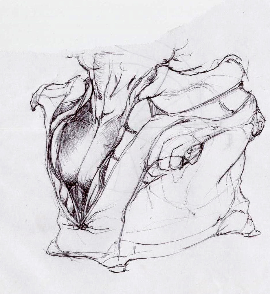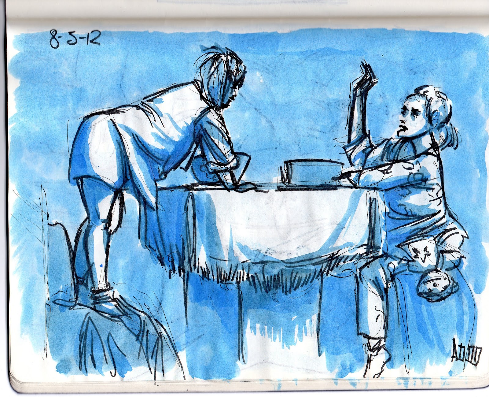 Coloco aquí dos bocetos que hice en una libretilla ayer. Uno con lápiz y otro con anilina.