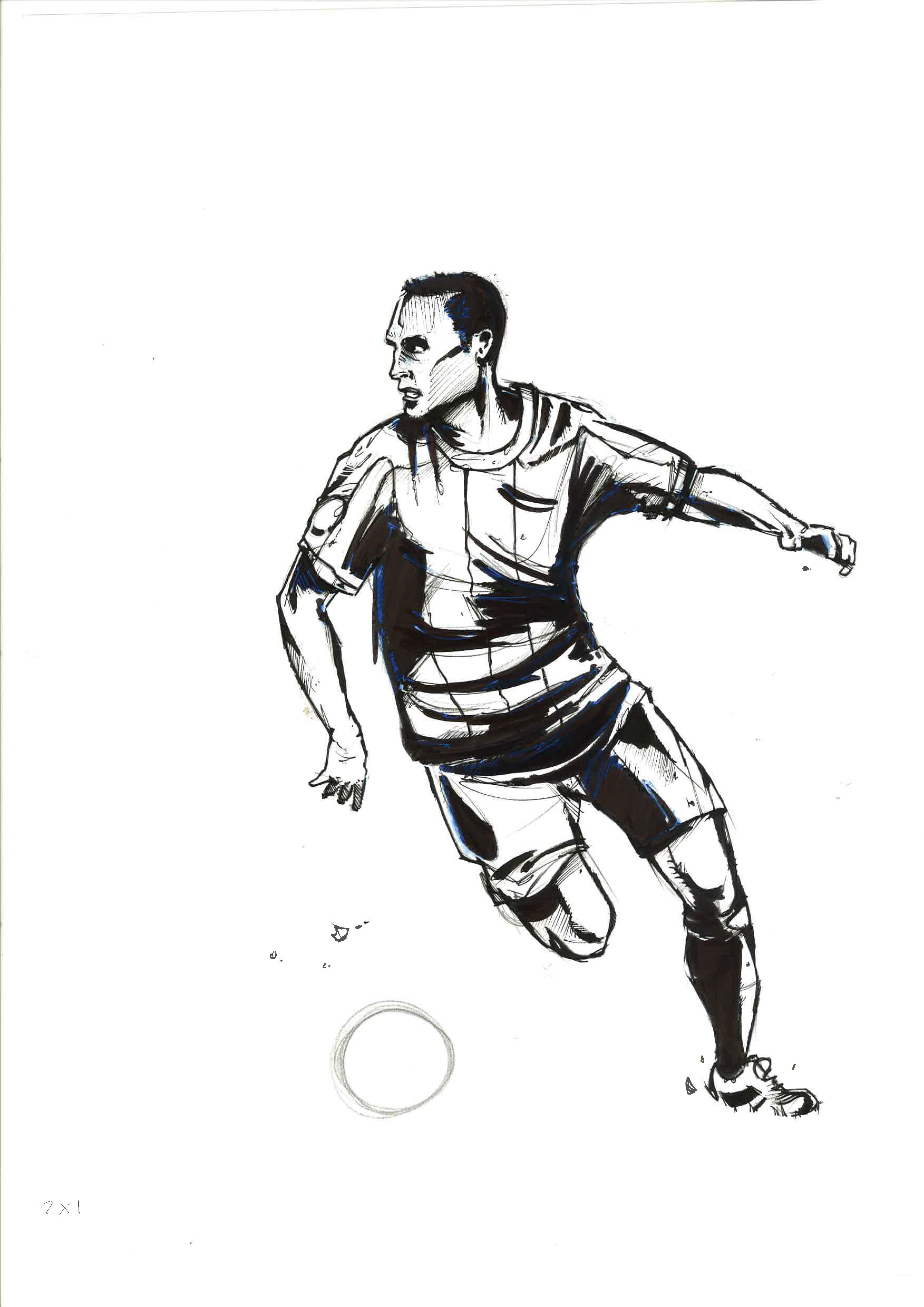 Jugador de fútbol / (lápiz/tinta y rotulador blanco).