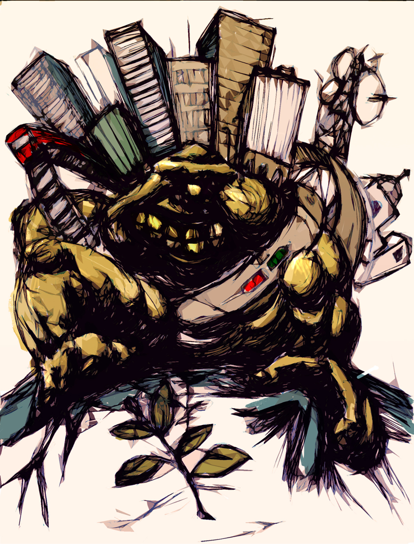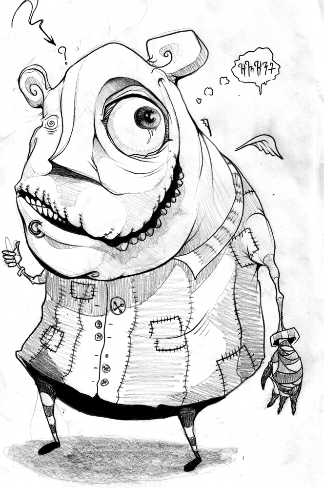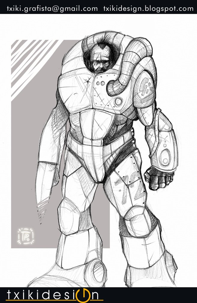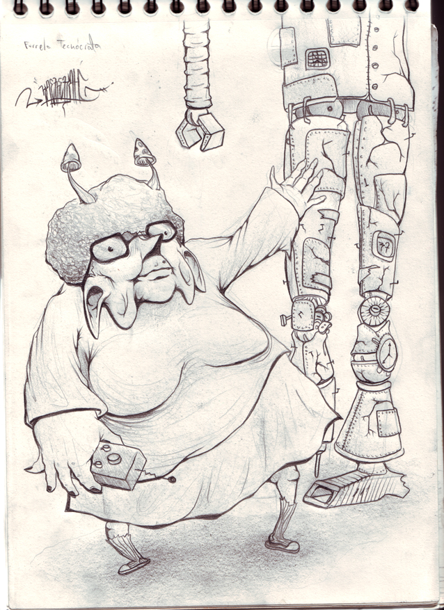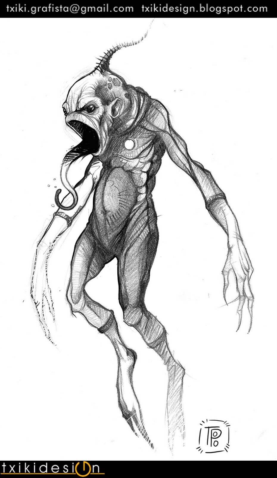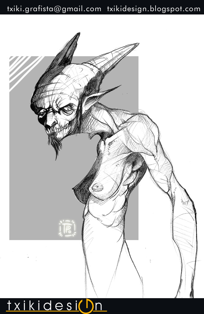 Este engendro humanoide es de hace unos cuantos años, antes de usar nada parecido al CG. Esta dibujado a bolígrafo vulgaris, que es lo que solía tener más a mano.