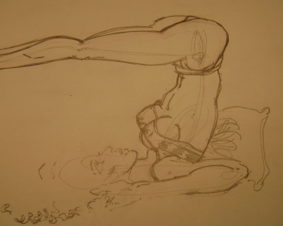 Creo que te iría bien trazar líneas sin definir para intentar captar la posición de la modelo, Trazos que, aunque se salgan de la figura.