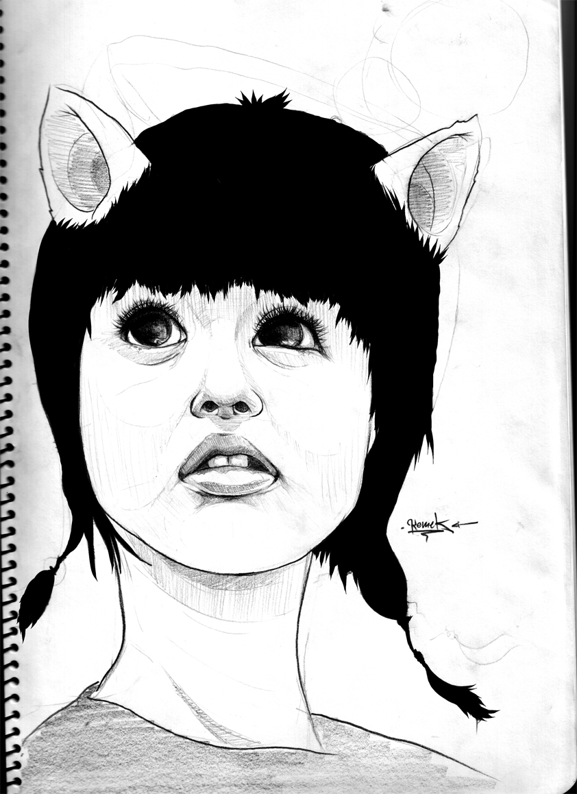 Sobre la perspectiva y el trazo, no sé qué decir, los ojos son grandes, el trazo no es peludo, que siempre se agradece, la dirección de la luz no está clara y no parece coherente, pero a mí me vale.