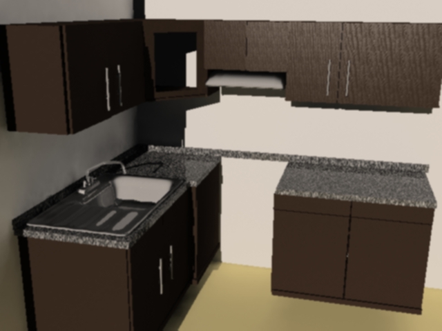 Hola, Cristian. El modelado se ve muy sencillo. Lo que le resta mayor realismo son las aristas y bordes tan perfectos. En la realidad siempre aparecen más o menos biselados. Las proporciones creo que desentonan un poco en algunas partes. El grifo no da la apariencia de grifo y el fregadero es bastante confuso, tal vez por el material.