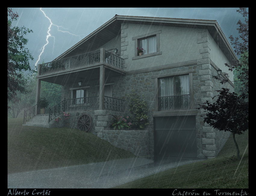 Excelente trabajo. Yo me quedo con la de la lluvia, el detalle de la acumulación de agua en el garaje me ha encantado y, me gusta mucho el efecto de rebote de la lluvia sobre el pavimento, ¿podrías contarnos cómo lo has hecho? Me gustaría probar. Un saludo.