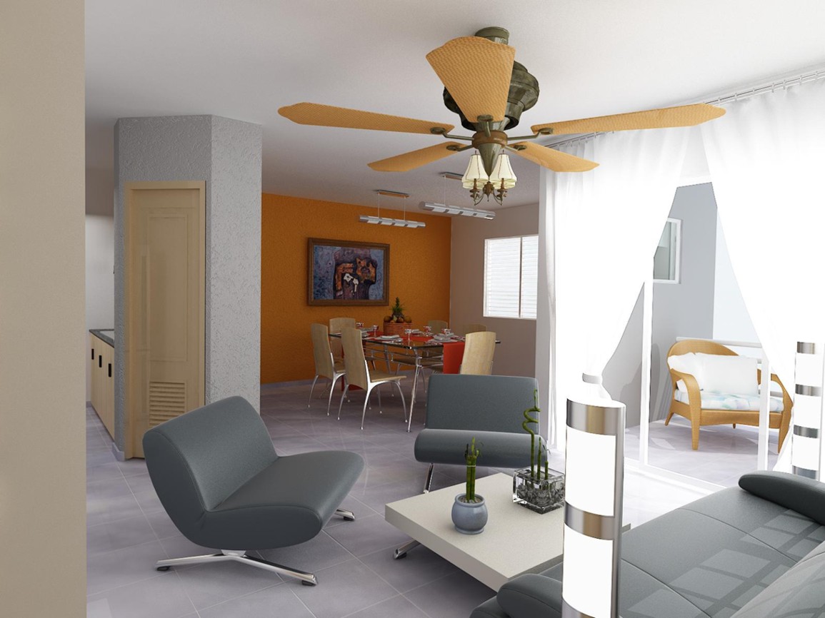 En este caso se trata del interior de un espacio sala comedor, una imagen enfocada en el comedor y la otra en la sala, 3d Studio 3dsMax 8 fue el software utilizado con Light Cache.