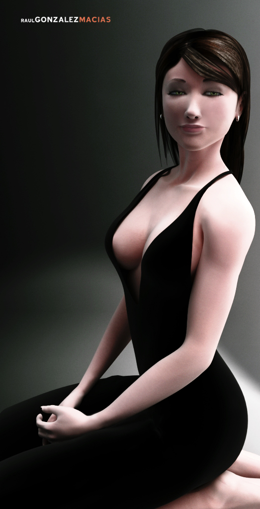 Me gusta, pero. Le veo rara la cara. Los ojos, nariz, algo raro en la cara que pierde realismo. Otra cosa que no me convence es ese color rosado y blanco de la piel. Igual un tono más natural le daría más realismo. Sé que por render no puedes hacerlo con, pero con bitmaps, vamos, es una opinión mía.