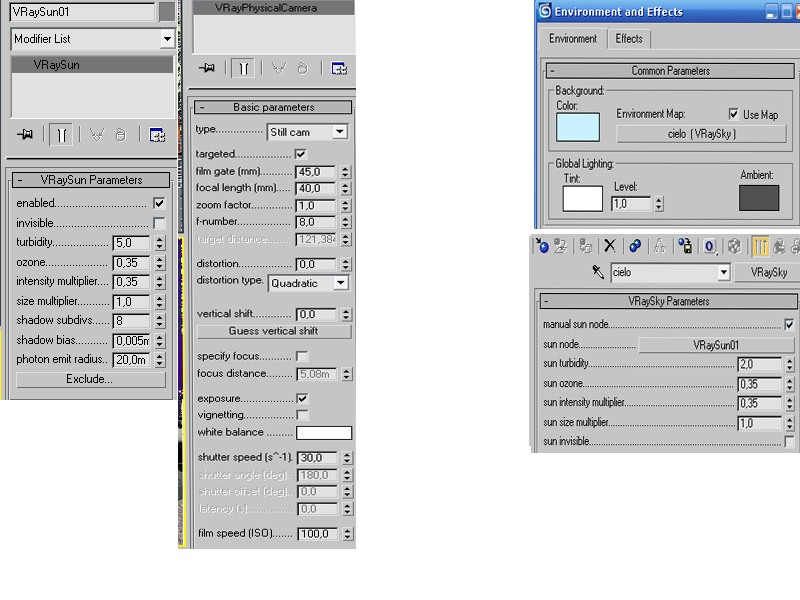 Muchas gracias Kalvin, voy a seguir probando, ah, otra cosa en tu escena has usado Vray Sun y camara Vray. Y gracias por tu interés.