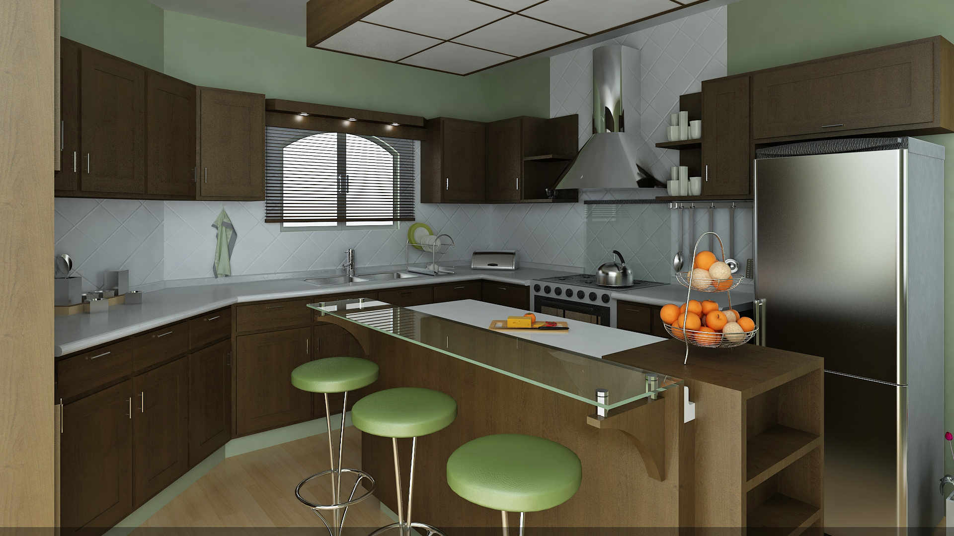 Yo lo veo bastante bien, eso sí haría algunas correcciones de mapeo como, por ejemplo, el piso de madera se ven las tablas muy pequeñas, al igual que en la mesada en la que se ve muy grande, deberías corregir un poco el metal de la heladera que no se ve muy bien lo mismo en las patas de las banquetas, y en la campana está demasiado brillante. Por otro lado, la iluminación la veo bastante bien. Saludos.