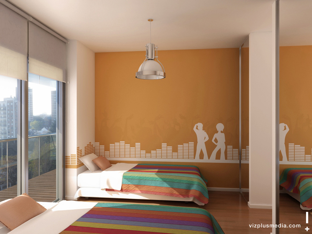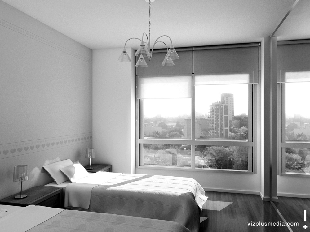 Hola Sergio, me parece que los trabajos están bstante bien, la iluminación esta correcta, pero hay un par de detalles que no acaban de afinar el trabajo, por ejemplo, me da la impresión de que la lámpara en el primer render está un poco grande (aunque puede ser impresión mia), y las almohadas parecen demasiado rígidas (no de material cómodo y acolchado, están tiesas vamos), aunque en este me gusta los colores de la pared y la integración de los edificios no es discordante con la perspectiva, en el segundo las almohadas vuelven a pecar de rigidez y la decoración de la pared, aunque es original no la elegiria por que es demasiado agresiva (para mi gusto claro está) para la habitación un niño o adolescente, la tercera no me gusta mucho la verdad ni la versión de b/n (pero esto vuelve a ser gusto personal) además hay como unas nubes detrás de la almohada que dan la impresión de ser como fallos de cálculo (me imagino que son nubes rosadas) en fin, que el trabajo lo veo correcto a pesar de esos detalles anteriores, sigue dándole duro y felicidades.