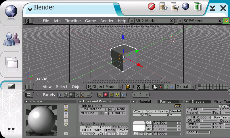 De hecho, hace tiempo que vi por ahí alguien que había compilado Blender para internet tablet 770 de Nokia, no sé si ahora que sale la 810 segundosuirá disponible e incluso funcionara mejor con el aumento de potencia del cacharrito. Está muy bien eso de poder llevar un programa como Blender en el bolsillo, literalmente y poder 3dsear donde sea. No es que vayas a hacer el modelo de tu vida con un pocket, pero sí que puede servir como moleskine digital para hacer algún apunte de algo que se te ocurra en el momento, muy interesante. Para muestra un botón.