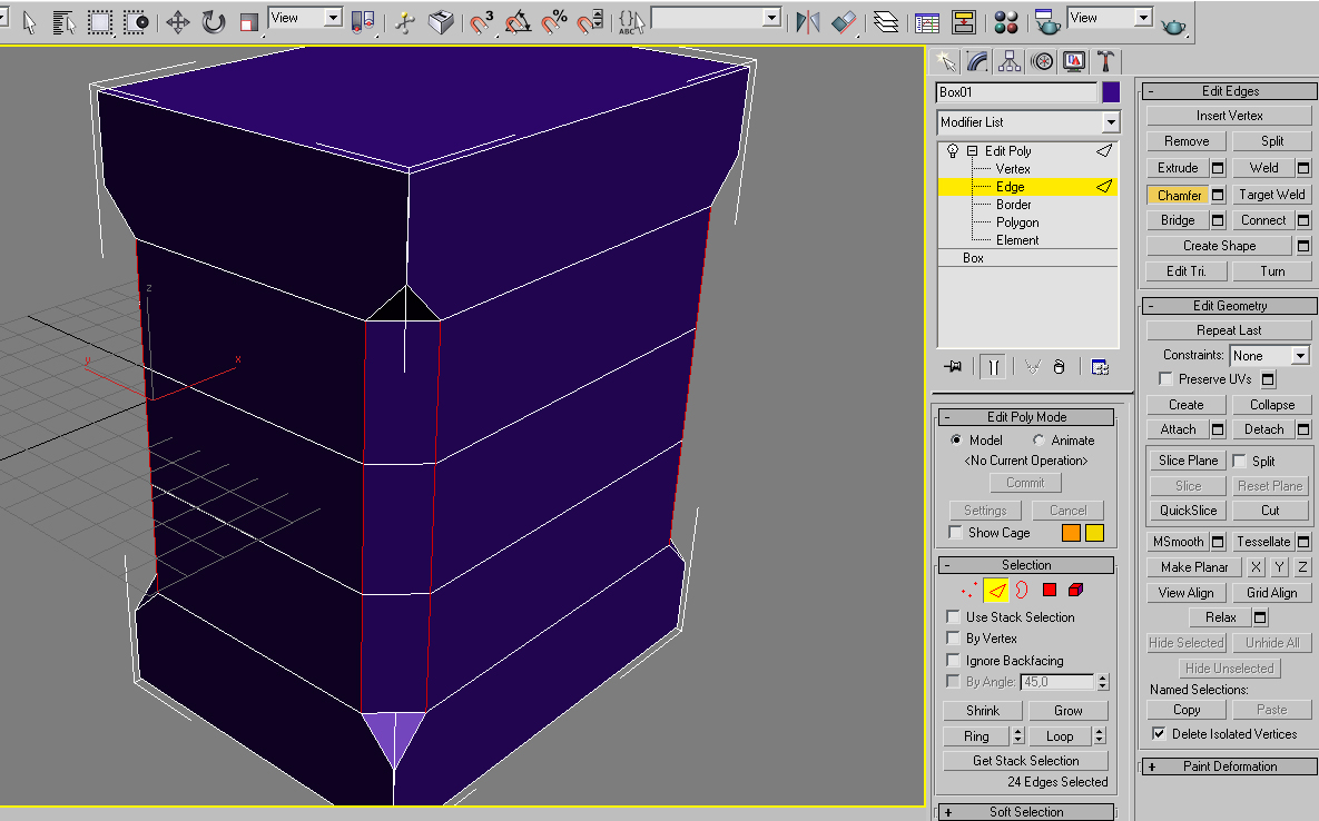 El primer problema me surge al hacer el biselado resulta que si quiero mover un poligo para dejar la forma del chaflán pues las aristas me vienen también y se deforma mal.