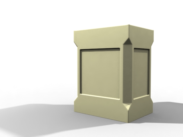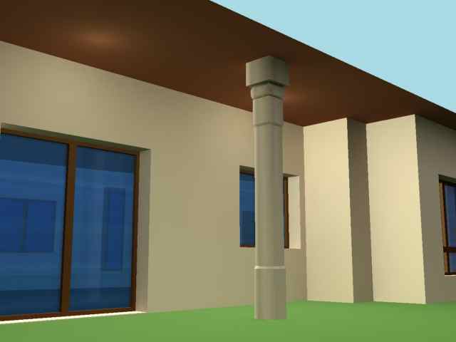 Bien os dejo una muestra de lo que llevo hecho, ahora se me a atragantado cómo hacer el redondeado en el capitel, según el (*.jpg) del primer mensaje. He intentado dividir los planos extruir y suavizar, pero me queda raro.