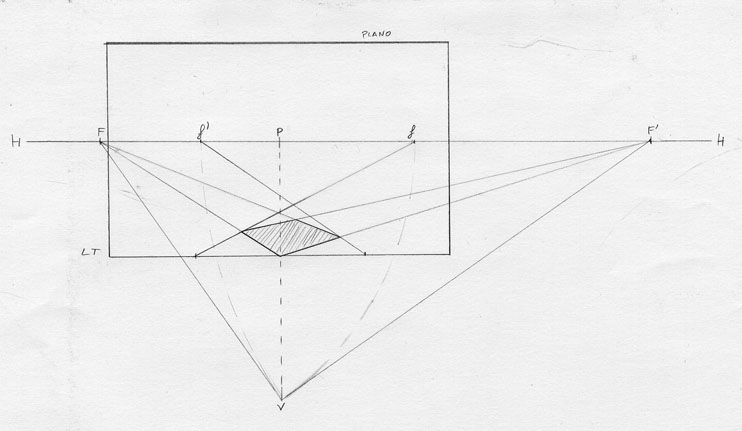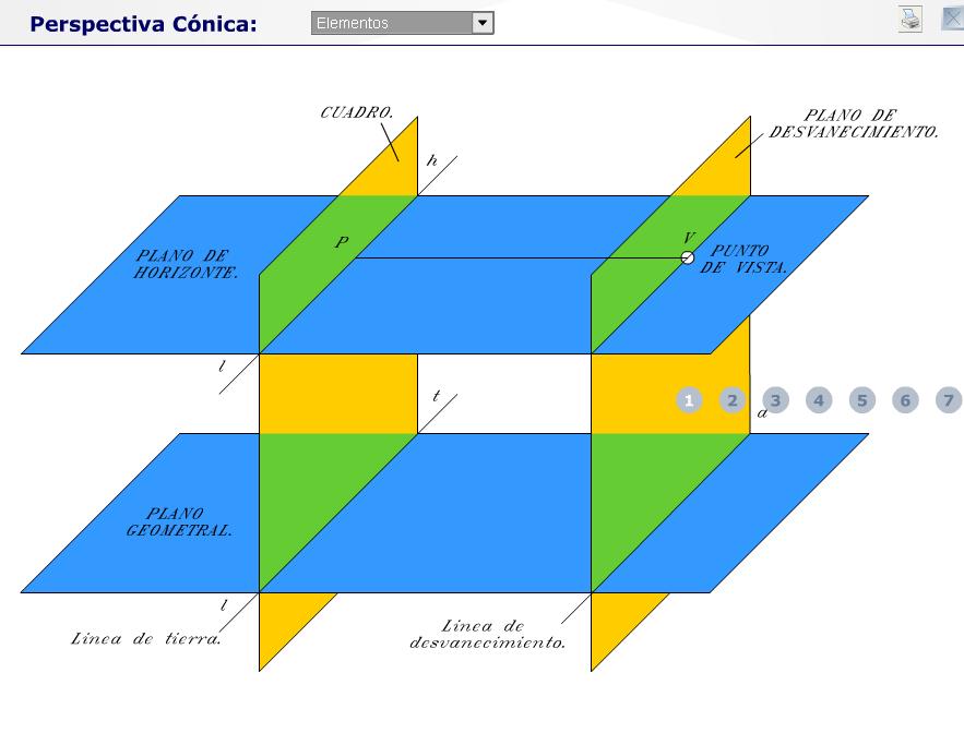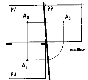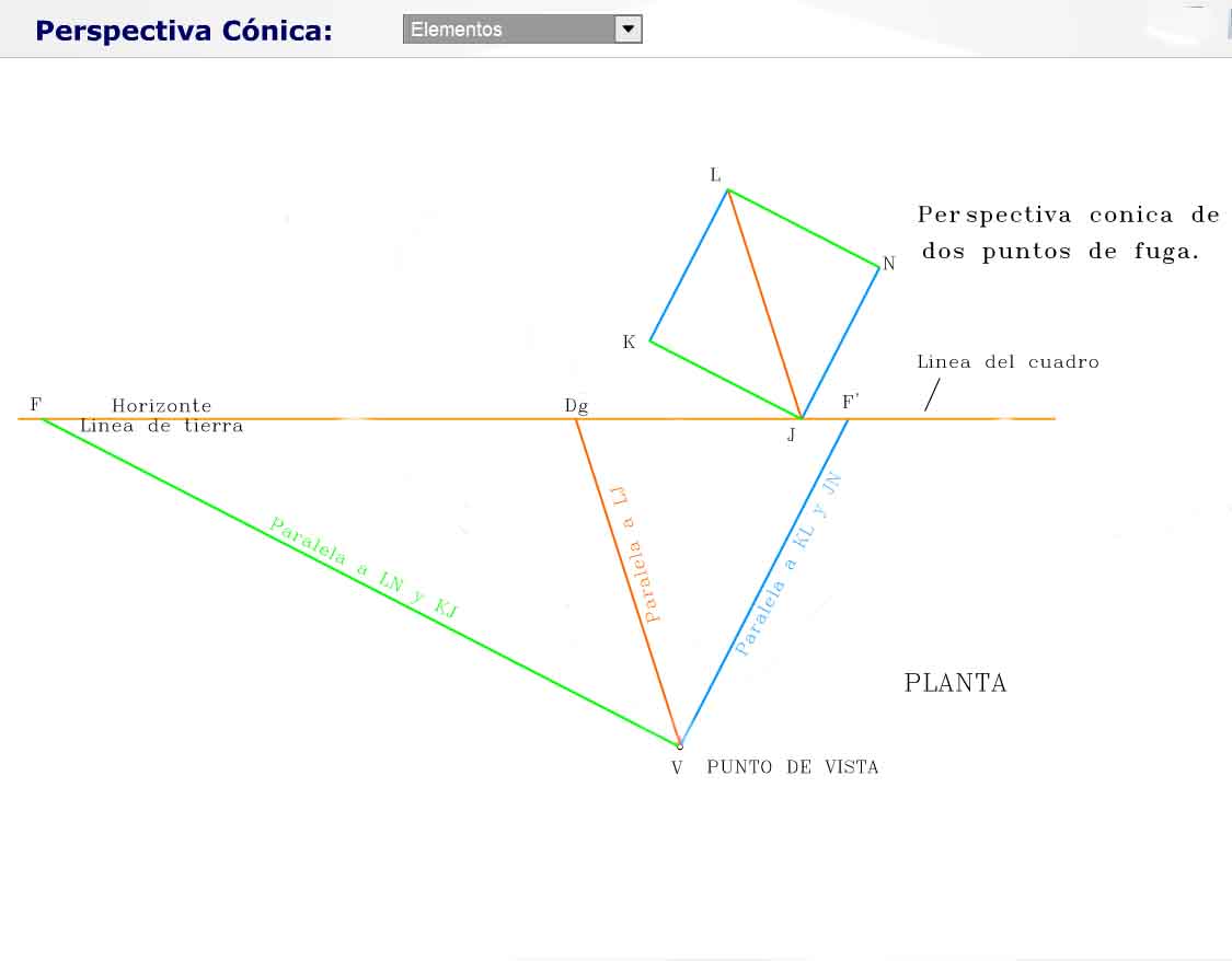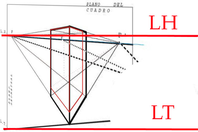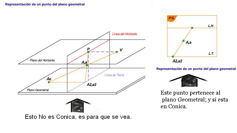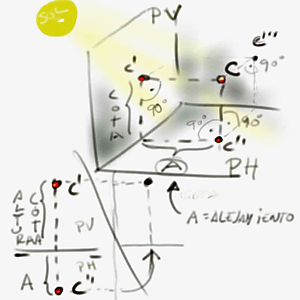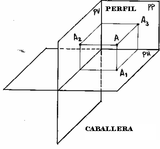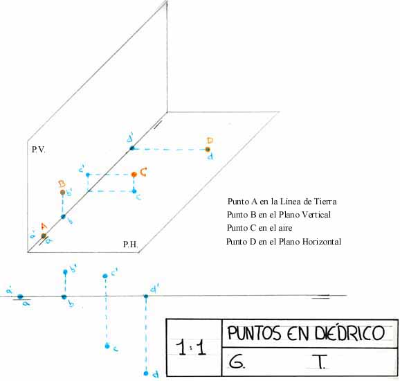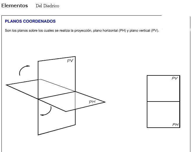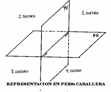 En el sistema diédrico el espacio queda dividido en cuatro partes iguales, por medio de dos planos perpendiculares entre sí, llamados plano de proyección vertical y plano de proyección horizontal. Estos dos, como cualquier par de planos que no presenten la particularidad de ser paralelos entre sí, se cortaran en una recta, recta conocida por linea de tierra (Lt).