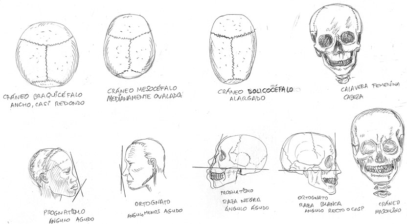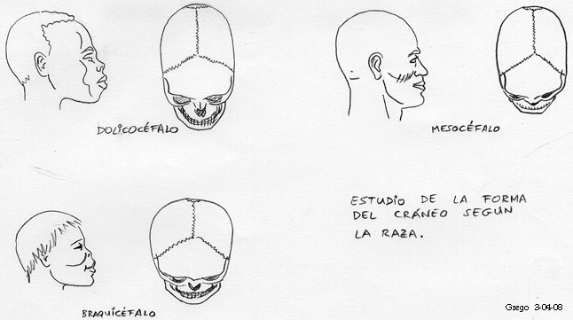 1- Diferencia de los cráneos según la raza, los he exagerado un poco.